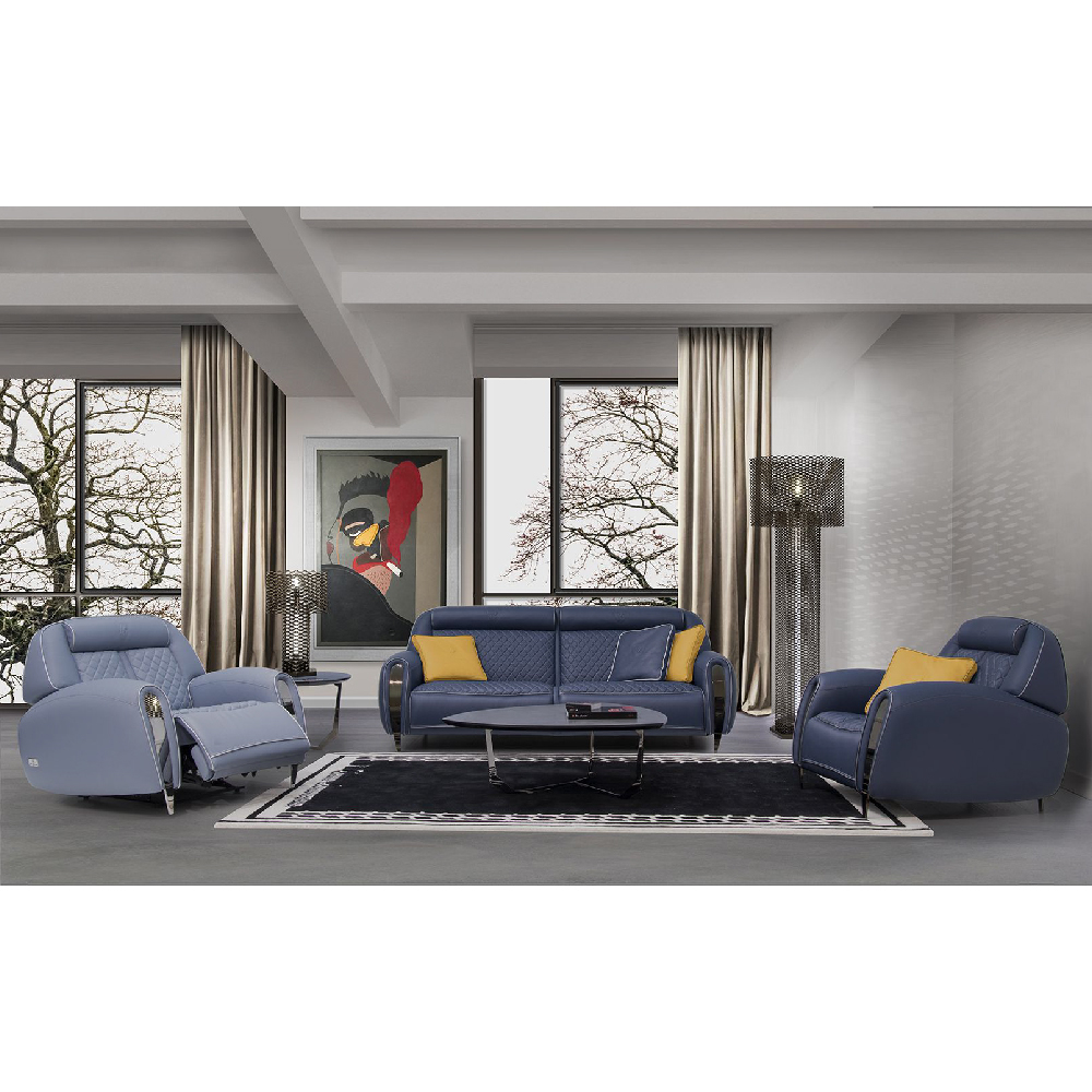 Leather Deer col. 291 Oceania, piping in leather Carbon Lead, top of arm in perforated leather, contrast stitching, with printed bull logo on headrest, inserts chrome black glossy. Pillow, cm 40x40, in leather Deer col. 251 Carioca, bands in perforated leather, tone on tone piping, printed bull logo.