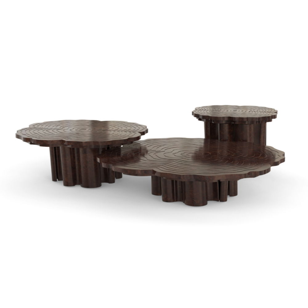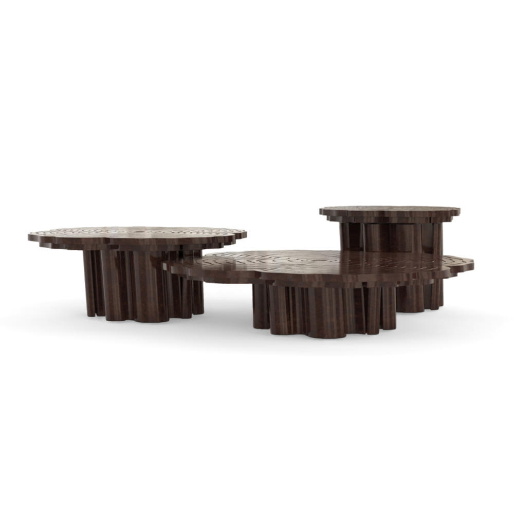 A center table made with polished brass and with three different tops in different levels. . It's finished with gloss varnish.