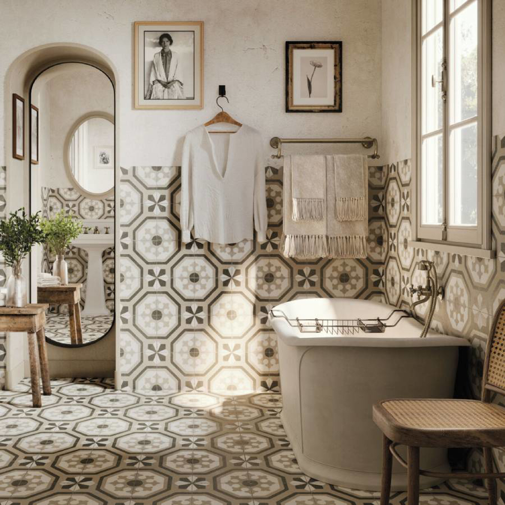 Discover the timeless elegance of the FS Paname collection inspired by the classic Parisian hydraulic tiles. These 18"x18" pre-cut tiles are the perfect fusion of tradition and modernity. With four unique designs, each piece of the FS Paname collection tells a story rich in style and sophistication