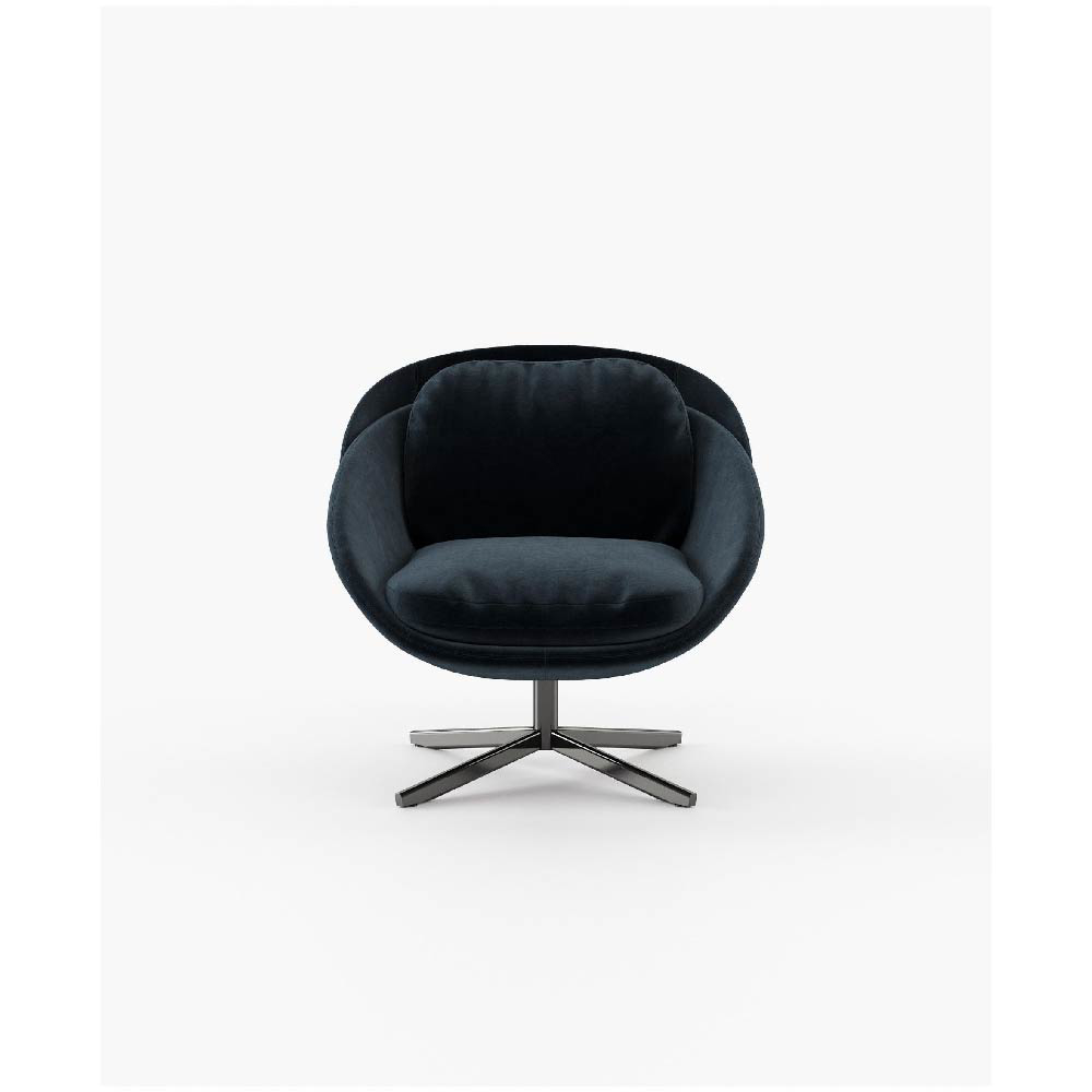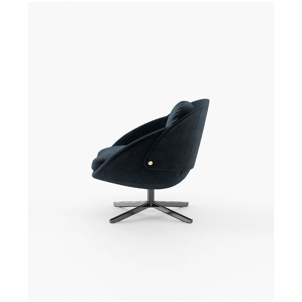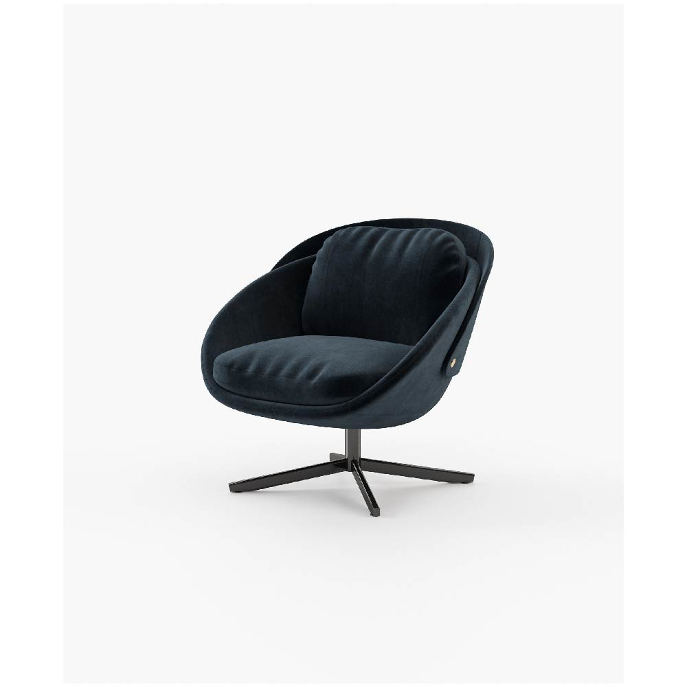 George embodies the essence of a modern swivel armchair, combining style and comfort perfectly. With a sleek metal base and premium leather upholstery on the outside, complemented by soft fabric on the inside, this armchair breathes sophistication.