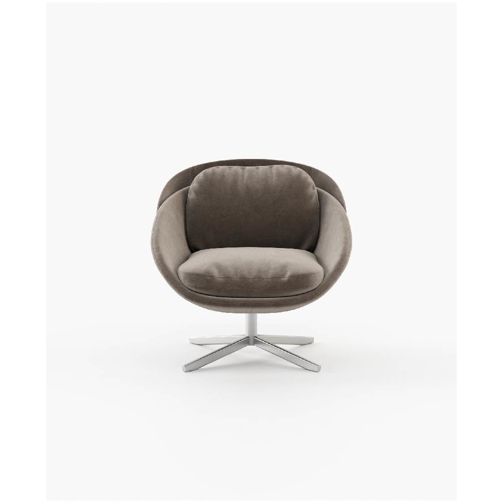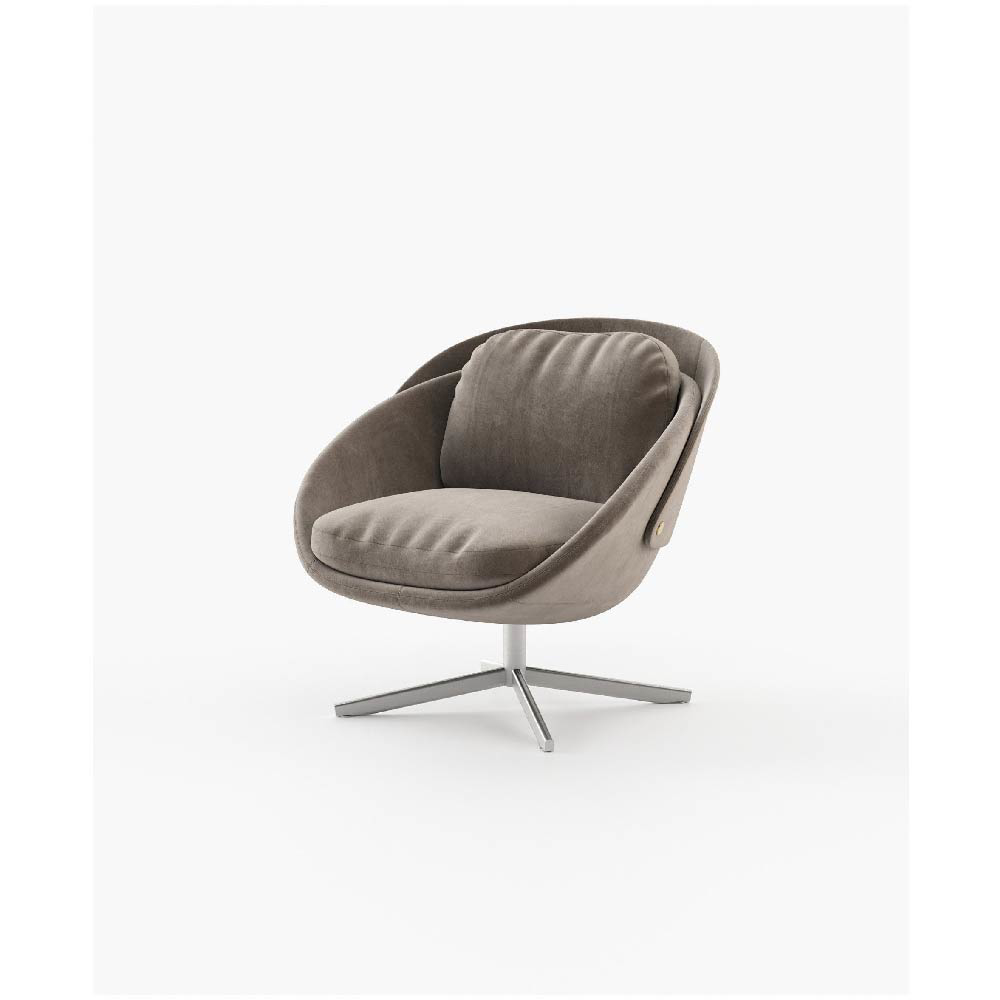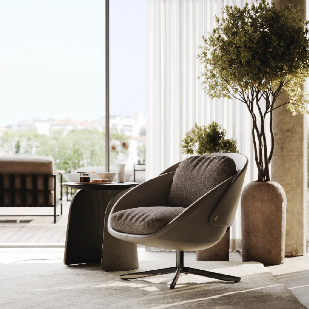 George embodies the essence of a modern swivel armchair, combining style and comfort perfectly. With a sleek metal base and premium leather upholstery on the outside, complemented by soft fabric on the inside, this armchair breathes sophistication.