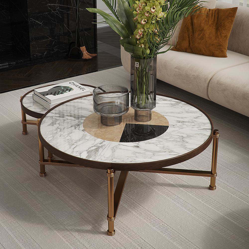 Georgia Center Table, Matte Walnut Wood, Top: Carrara Marble, Nero Marquina Marble and Light Emperador Marble