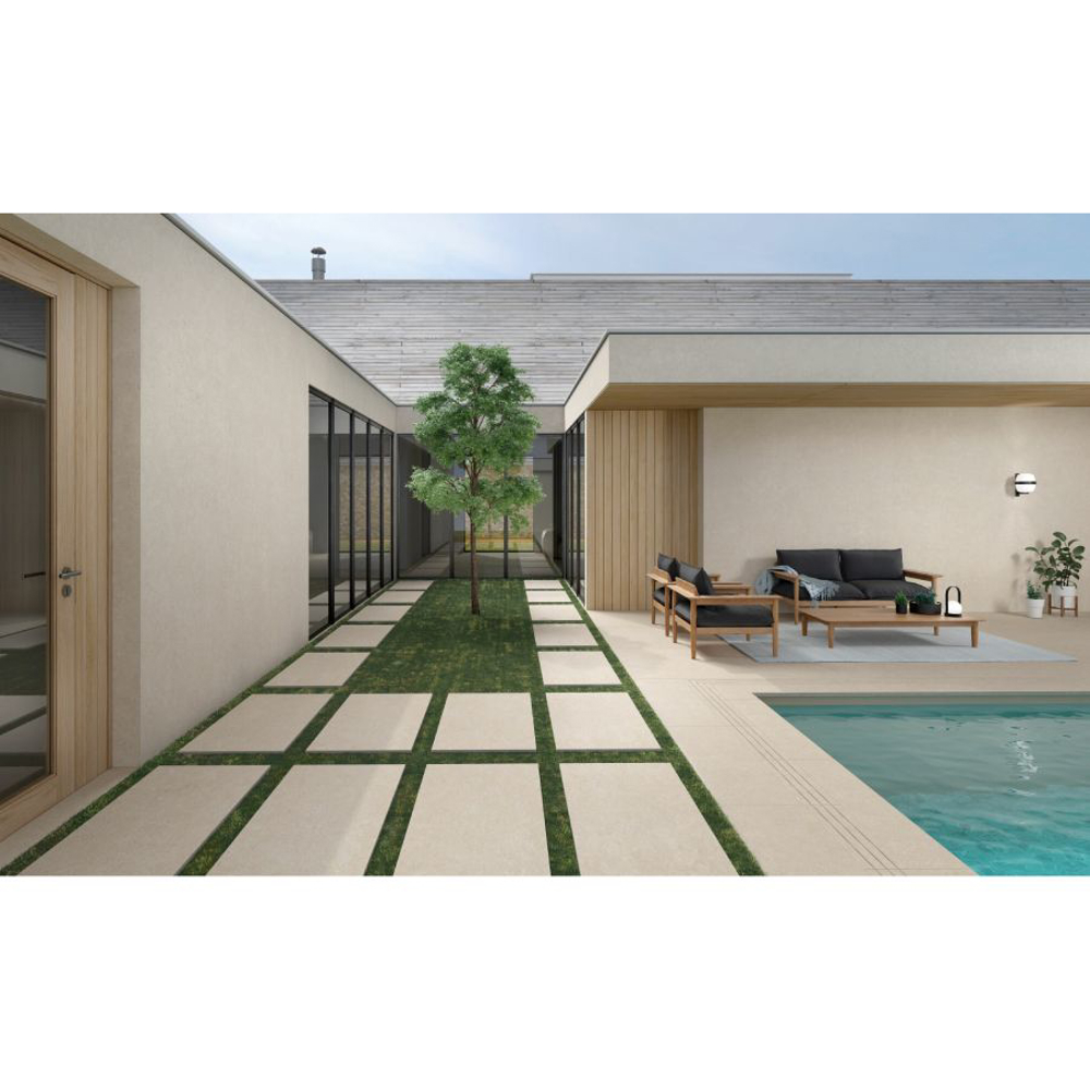 Ghent 4D also comes in 40"x71" and 40"x40" formats so that wall and floor surfaces tiled in matching sizes can be created, with a continuous joint and perfect attention to detail. Its limestone design comes in a choice of white, silver, beige and grey, with a design rich in subtle nuances, whose fossil remains and saline effects take us back through history . The same design is also available in a 5/16"-thick 40"x40" non-slip version, suitable for use outdoors for creating seamless transitions between indoor and outdoor floor areas, generating an added sense of spaciousness. The Ghent collection has been extended, with the incorporation of the most robust tiles to date: extra-thick 13/16" tiles. Available in a choice of 4 colours, Ghent 13/16" is the perfect solution for outdoor areas, thanks to its thickness and its 40"x40" and 20"x40" formats.