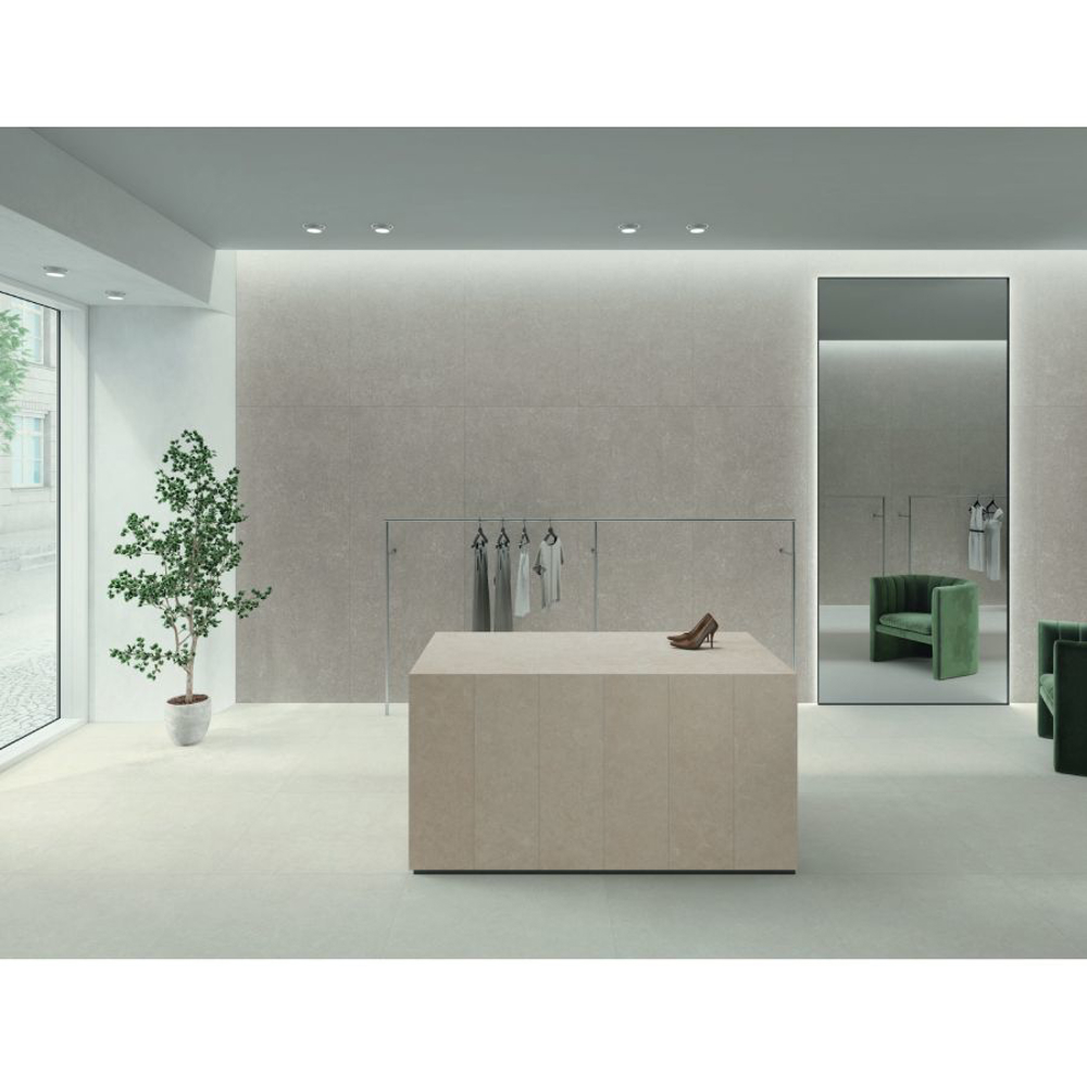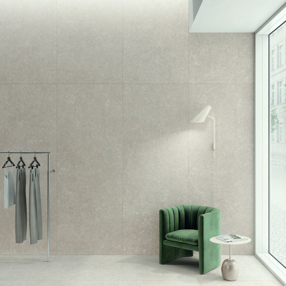 Ghent 4D also comes in 40"x71" and 40"x40" formats so that wall and floor surfaces tiled in matching sizes can be created, with a continuous joint and perfect attention to detail. Its limestone design comes in a choice of white, silver, beige and grey, with a design rich in subtle nuances, whose fossil remains and saline effects take us back through history . The same design is also available in a 5/16"-thick 40"x40" non-slip version, suitable for use outdoors for creating seamless transitions between indoor and outdoor floor areas, generating an added sense of spaciousness. The Ghent collection has been extended, with the incorporation of the most robust tiles to date: extra-thick 13/16" tiles. Available in a choice of 4 colours, Ghent 13/16" is the perfect solution for outdoor areas, thanks to its thickness and its 40"x40" and 20"x40" formats.