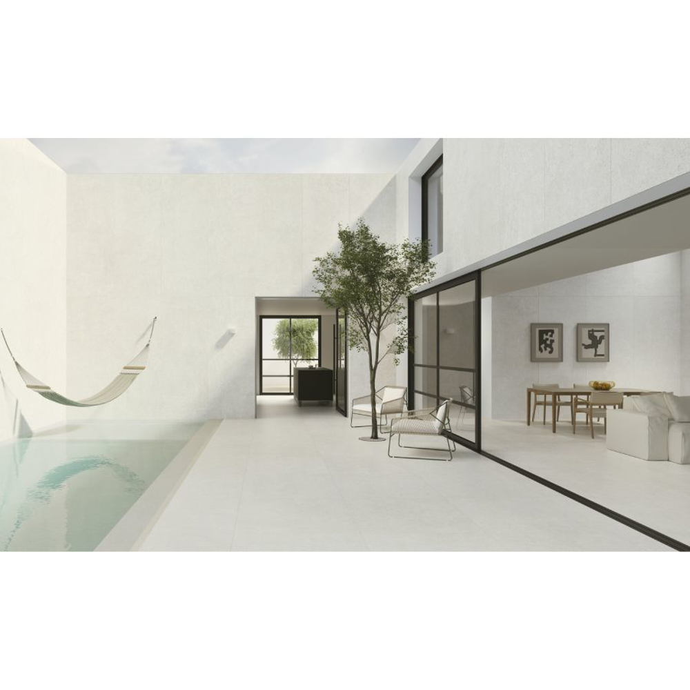 Ghent 4D also comes in 40"x71" and 40"x40" formats so that wall and floor surfaces tiled in matching sizes can be created, with a continuous joint and perfect attention to detail. Its limestone design comes in a choice of white, silver, beige and grey, with a design rich in subtle nuances, whose fossil remains and saline effects take us back through history . The same design is also available in a 5/16"-thick 40"x40" non-slip version, suitable for use outdoors for creating seamless transitions between indoor and outdoor floor areas, generating an added sense of spaciousness. The Ghent collection has been extended, with the incorporation of the most robust tiles to date: extra-thick 13/16" tiles. Available in a choice of 4 colours, Ghent 13/16" is the perfect solution for outdoor areas, thanks to its thickness and its 40"x40" and 20"x40" formats.