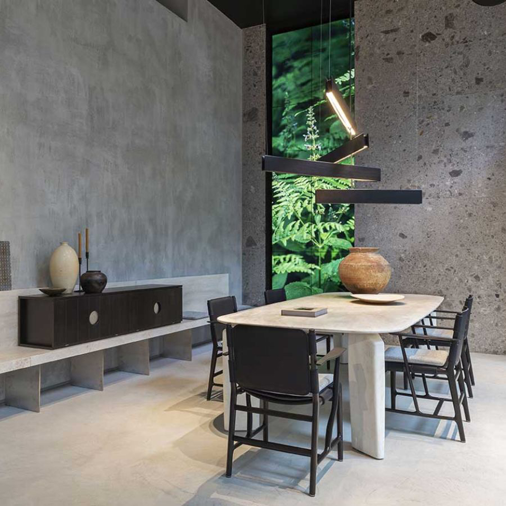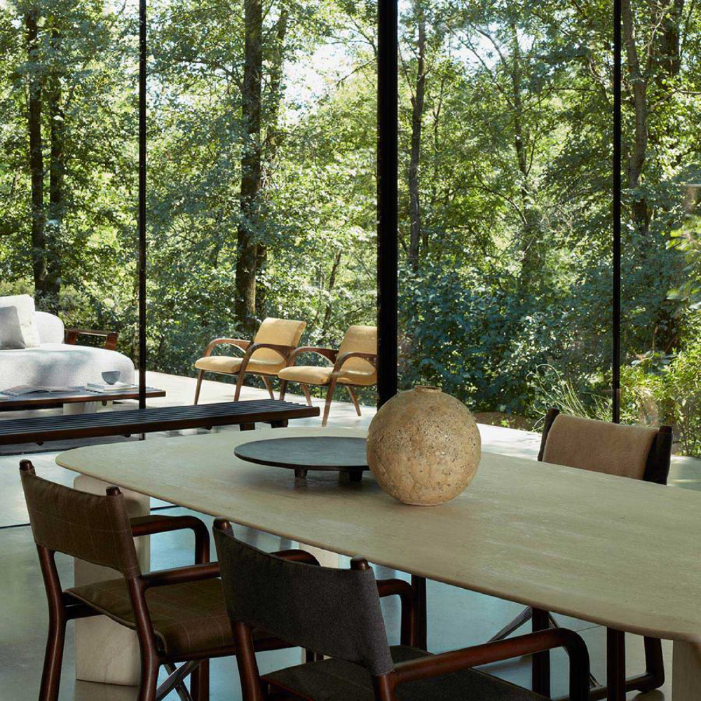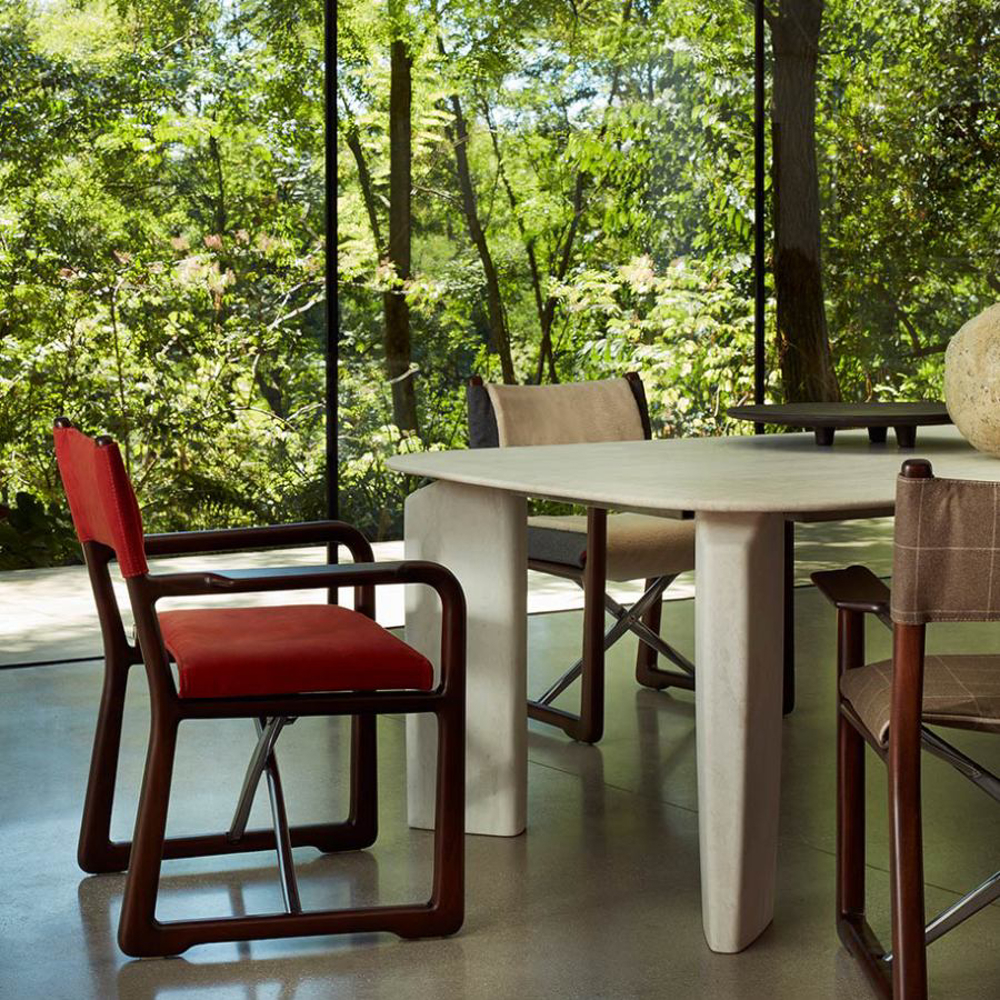 Every element of Giotto Table is carved in marble. Arabescato Orobico Red, Steven Black, Ostuni Travertine: the chosen finish gives life to different chromatic games, creating personal furnishing motifs.