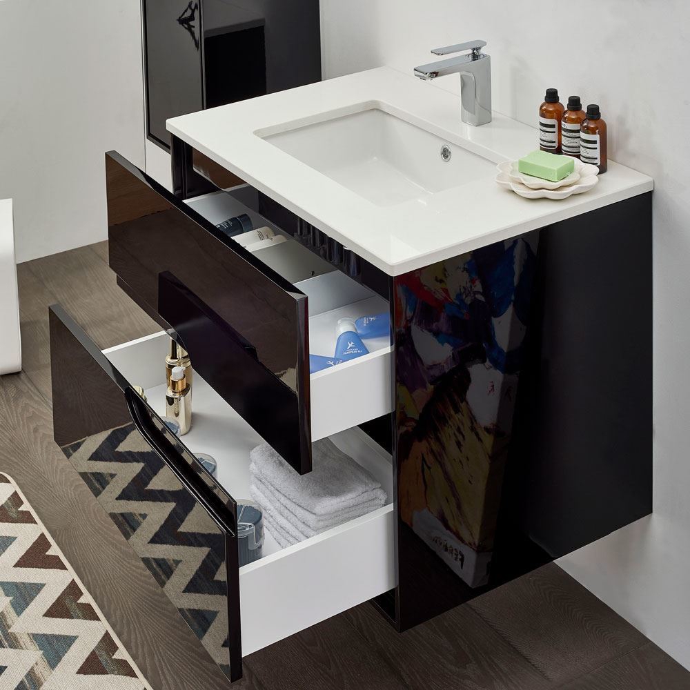 It is designed to complement any bathroom interior with its high glossy black finish, uniquely designed handles and space drawers, which are ideal for keeping your daily essentials.