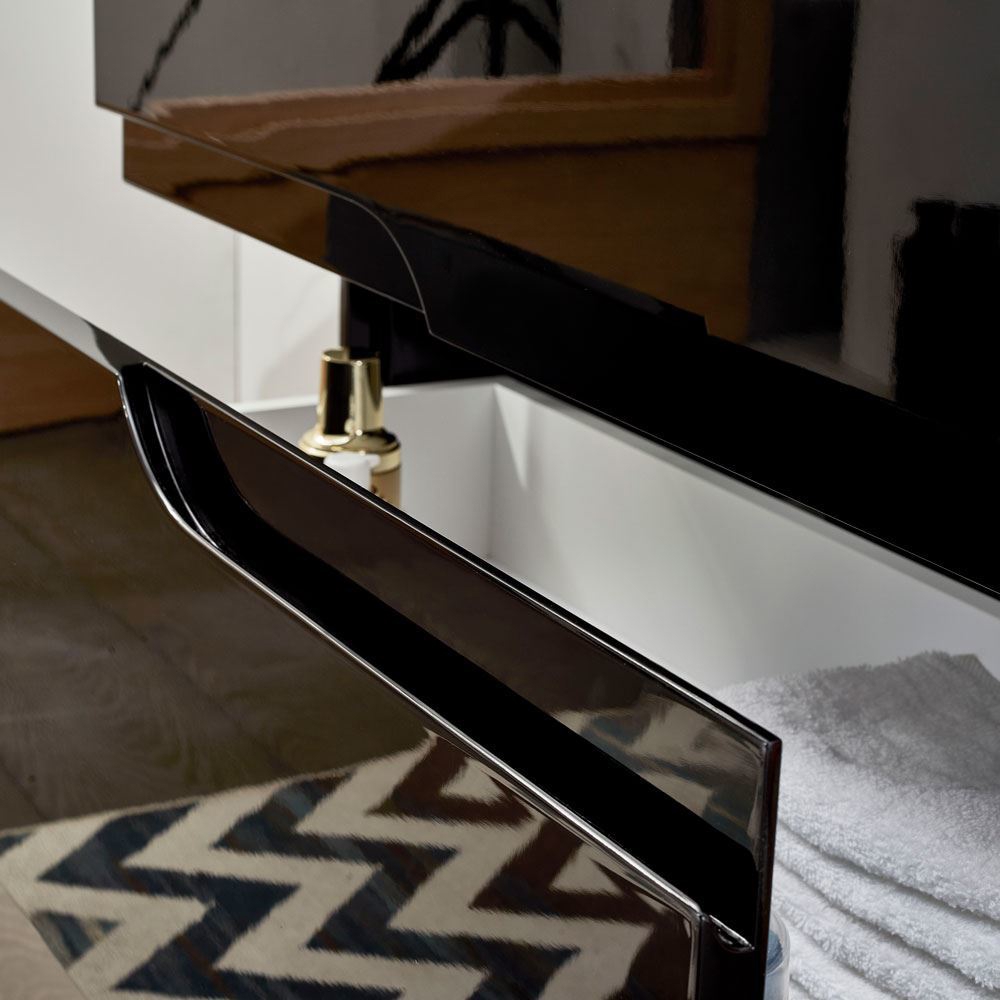 It is designed to complement any bathroom interior with its high glossy black finish, uniquely designed handles and space drawers, which are ideal for keeping your daily essentials.