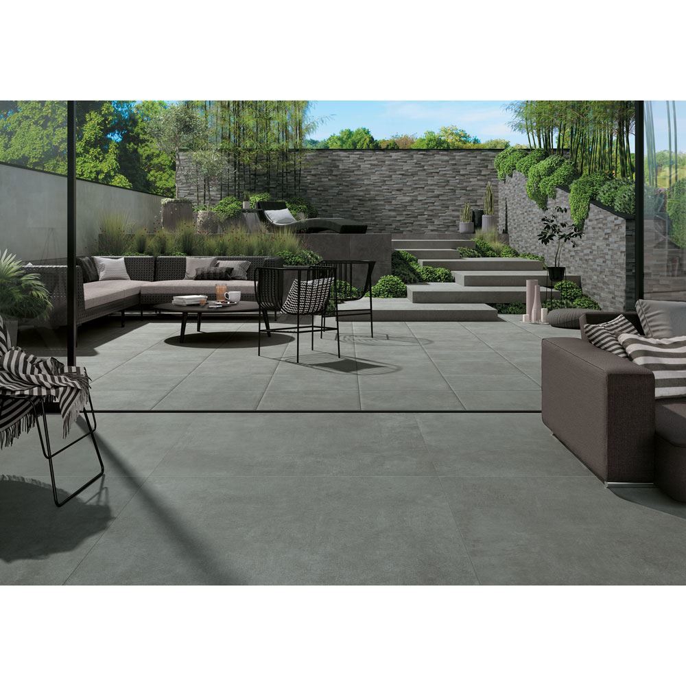 The flatness and the large size precision of the porcelain slab, the visual impact, and the non-slip finish are excellent for gardens, parks, terraces, driveways, and swimming pools.