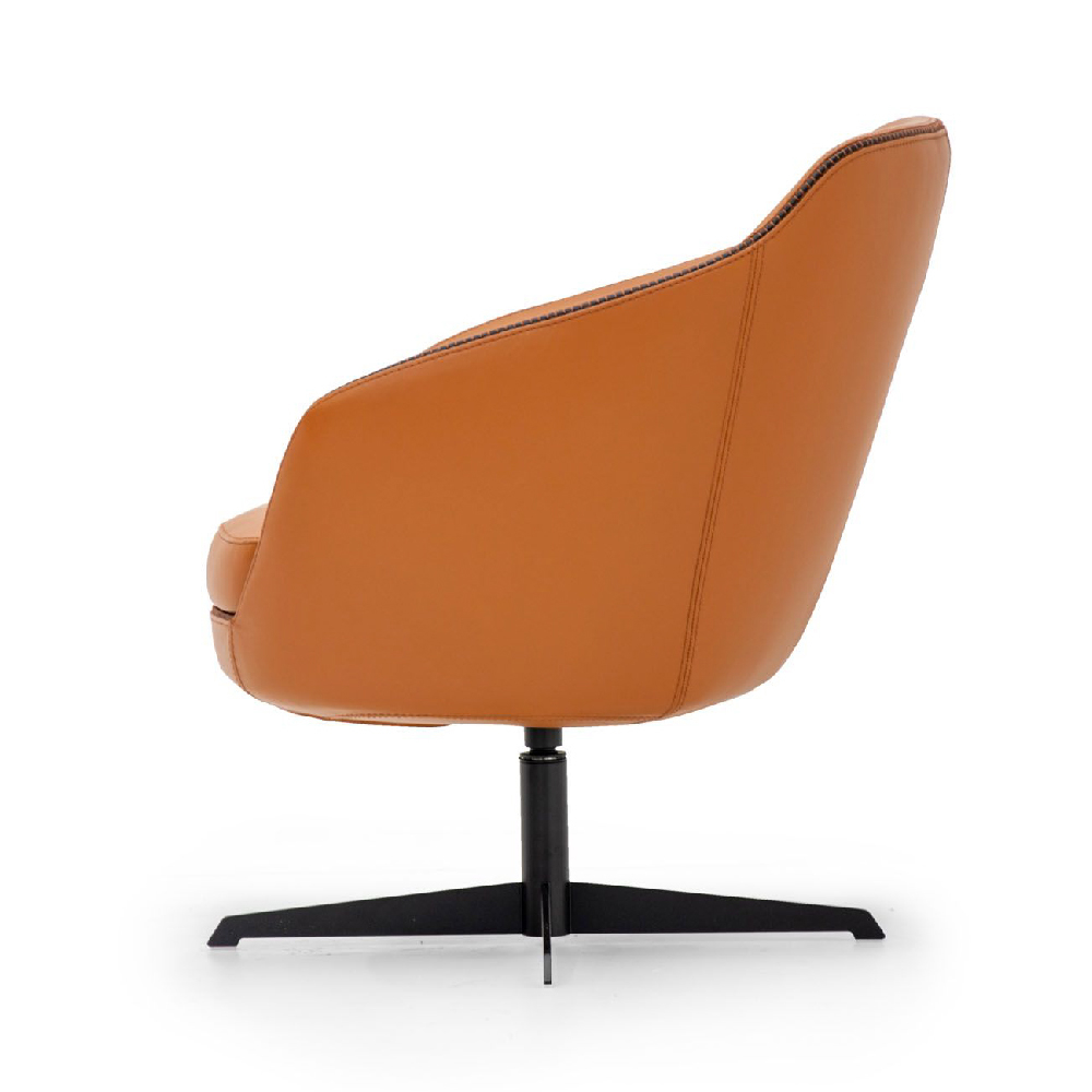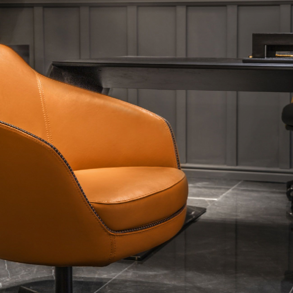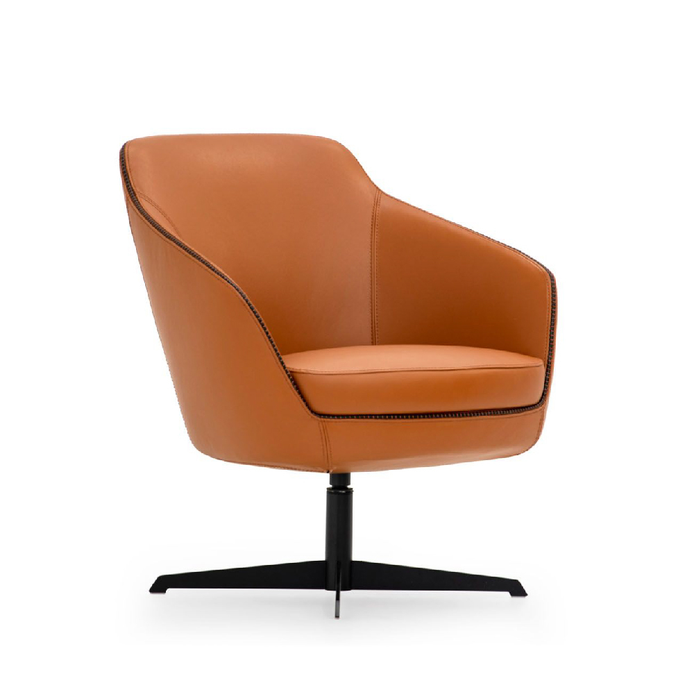 Leather art. Daino col. Whiskey, piping in leather Daino col. Coal, metal base lacquered black matt.