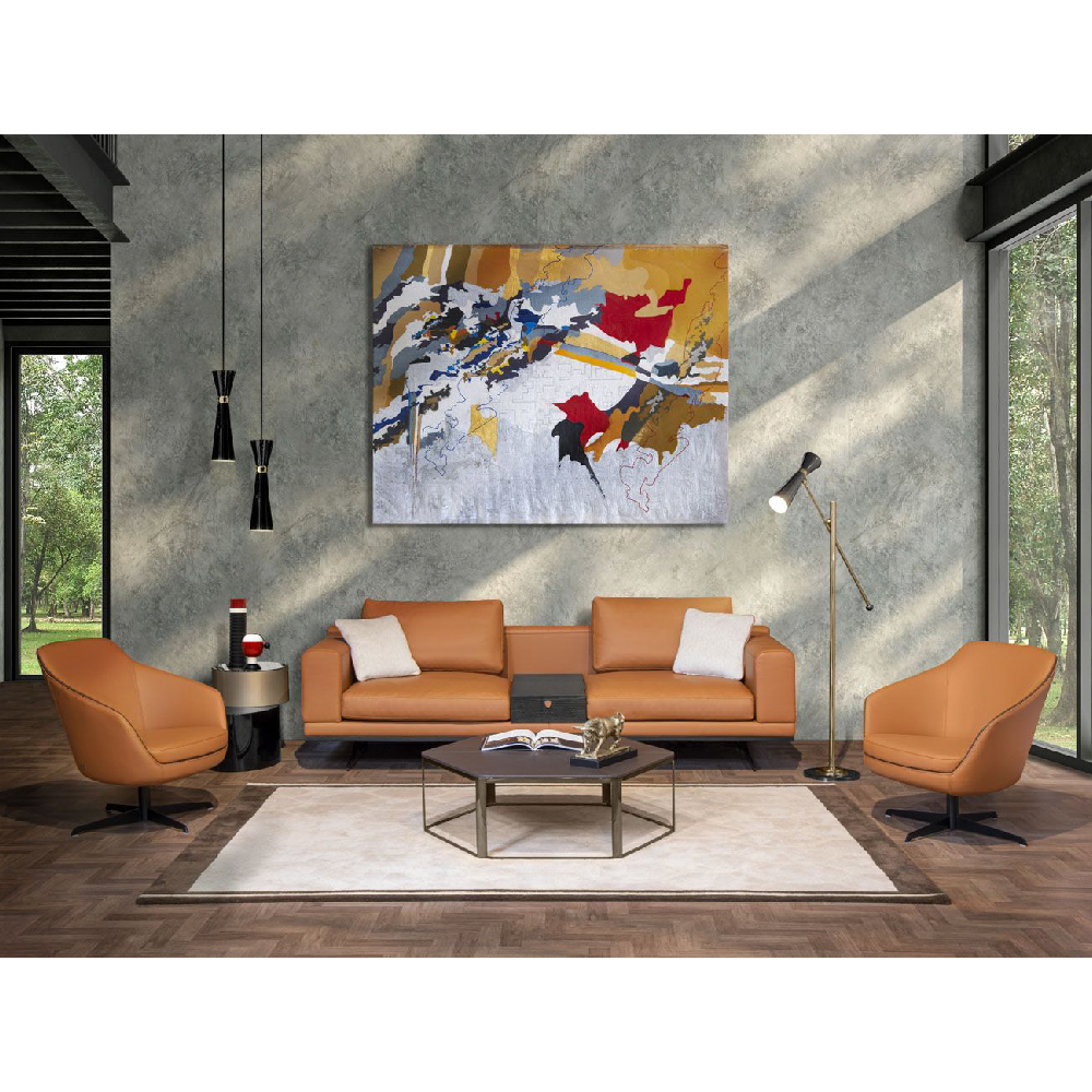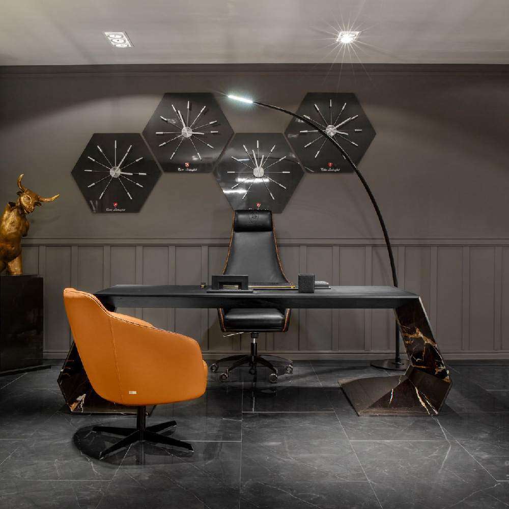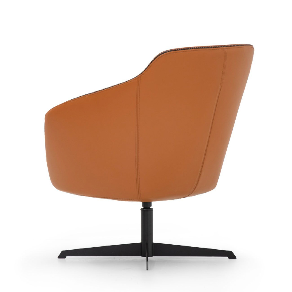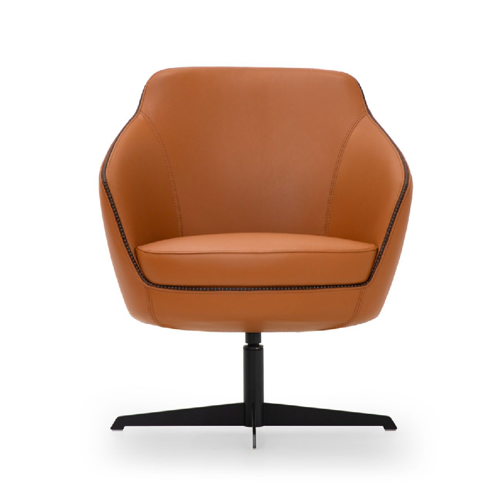 Leather art. Daino col. Whiskey, piping in leather Daino col. Coal, metal base lacquered black matt.