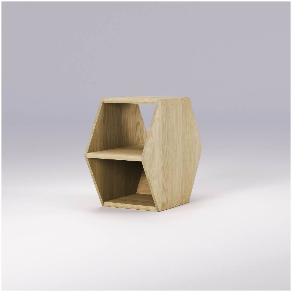 Whether used as a standalone piece or arranged in a combination, Hexa brings a fresh, modern touch to any room. Its geometric shape, paired with the natural beauty of solid wood, creates an inviting, functional design that can be tailored to fit your specific space requirements.