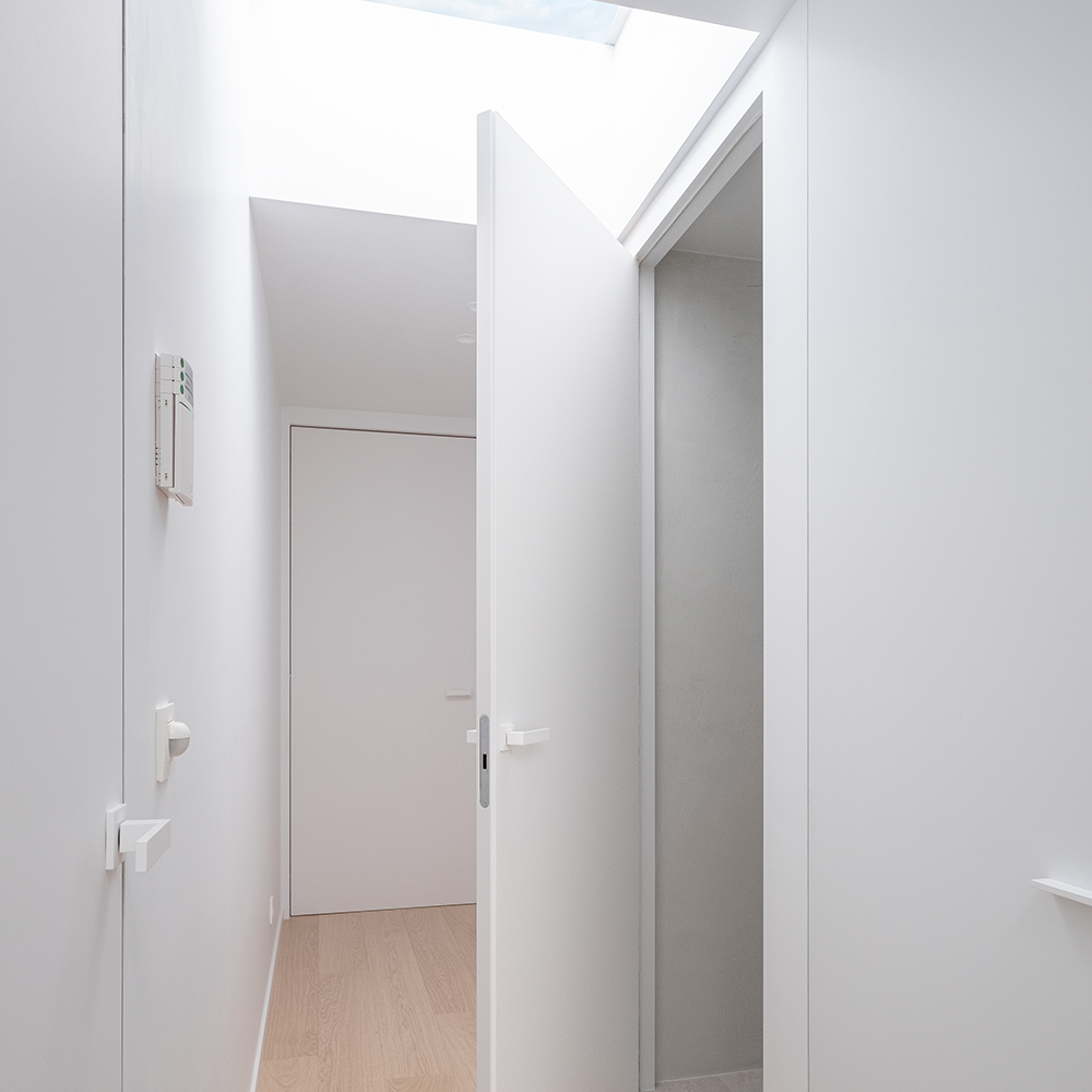 When painted in the same color as the wall, the frameless flush door becomes almost invisible, achieving a discreet architectural effect that enhances contemporary, minimalist, and luxury interiors.