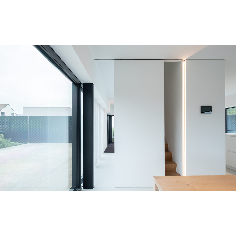 The system includes integrated soft-close stops, available single- or double-sided, ensuring smooth and silent operation. Finished jambs only require the final wall color to be applied, simplifying installation and delivering a clean, cohesive appearance.
