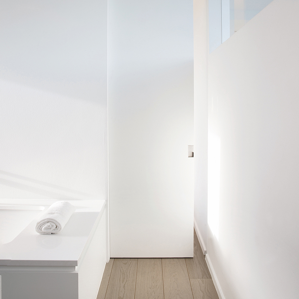 The system includes integrated soft-close stops, available single- or double-sided, ensuring smooth and silent operation. Finished jambs only require the final wall color to be applied, simplifying installation and delivering a clean, cohesive appearance.