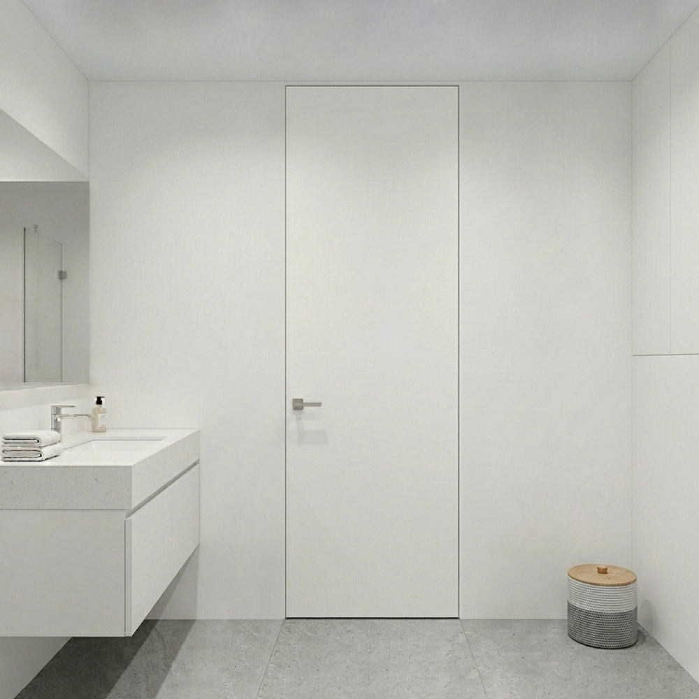 The solid, durable frame ensures quick and hassle-free installation, while hinges color-matched to the frame and finishes in white or black create a refined and cohesive look. When painted to match the wall, the frameless flush door becomes nearly invisible, achieving a discrete, timeless aesthetic that enhances modern, minimalist, and luxury interiors.