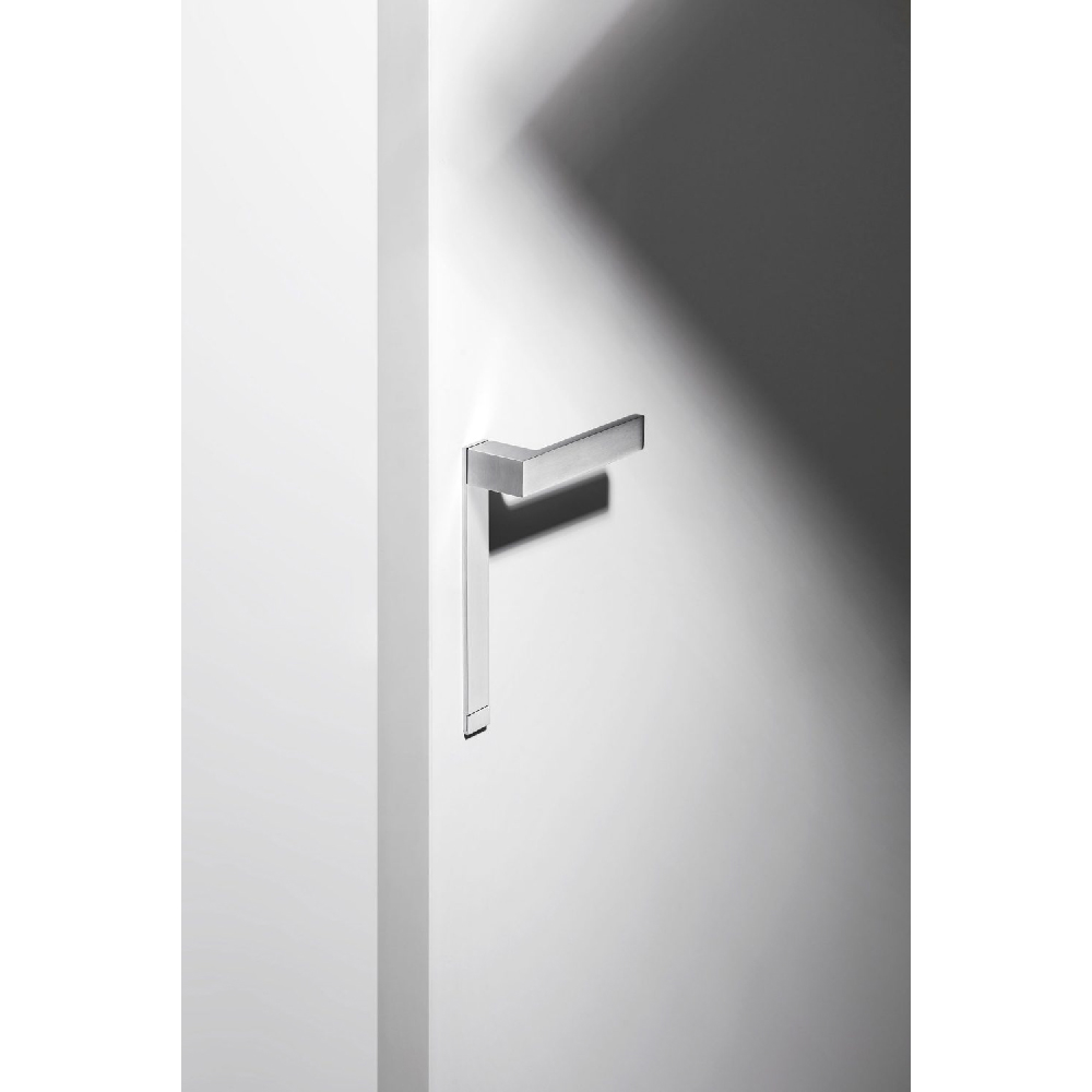 A handle does not only open a door. A handle does not open only one door. The gesture that accompanies the opening or closing of a door has to be part of the description of an emotion in the everyday dimension of time. That gesture possesses an invisible thread, though we have forgotten it, that unconsciously leads us into the room we open before our eyes or we leave behind us. We want to make visible that thread created by the handle as a moment suspended between two moments. The two-dimensional thread extends from the various borders of the door and forms the handle, then continuing its voyage in the imagination, towards the other side, then upward, then in another direction. It is a line that could host or sum up words, memories, dreams, emotions. The relationship between the surface of a door and its thickness thus becomes similar to a movement that is designed on that surface like a materic, empathic “soligram.”