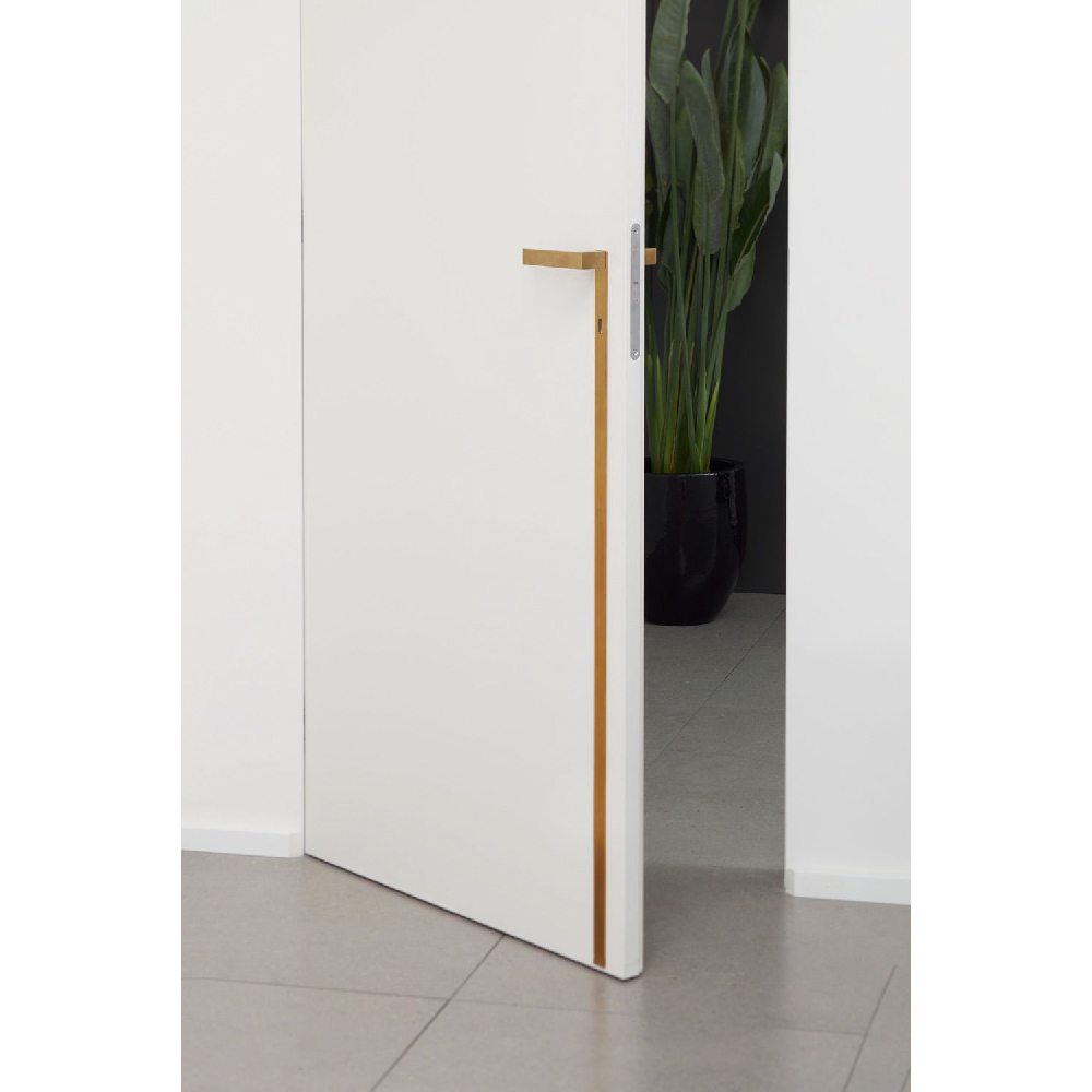 A handle does not only open a door. A handle does not open only one door. The gesture that accompanies the opening or closing of a door has to be part of the description of an emotion in the everyday dimension of time. That gesture possesses an invisible thread, though we have forgotten it, that unconsciously leads us into the room we open before our eyes or we leave behind us. We want to make visible that thread created by the handle as a moment suspended between two moments. The two-dimensional thread extends from the various borders of the door and forms the handle, then continuing its voyage in the imagination, towards the other side, then upward, then in another direction. It is a line that could host or sum up words, memories, dreams, emotions. The relationship between the surface of a door and its thickness thus becomes similar to a movement that is designed on that surface like a materic, empathic “soligram.”