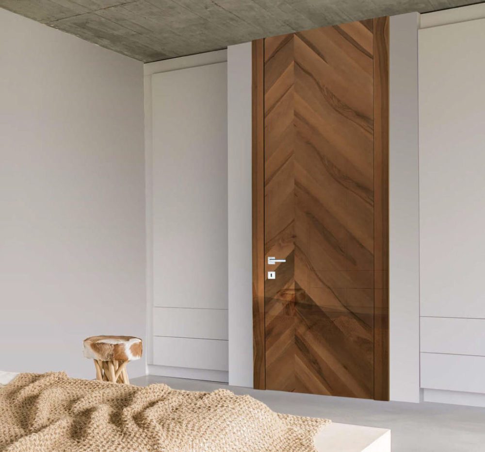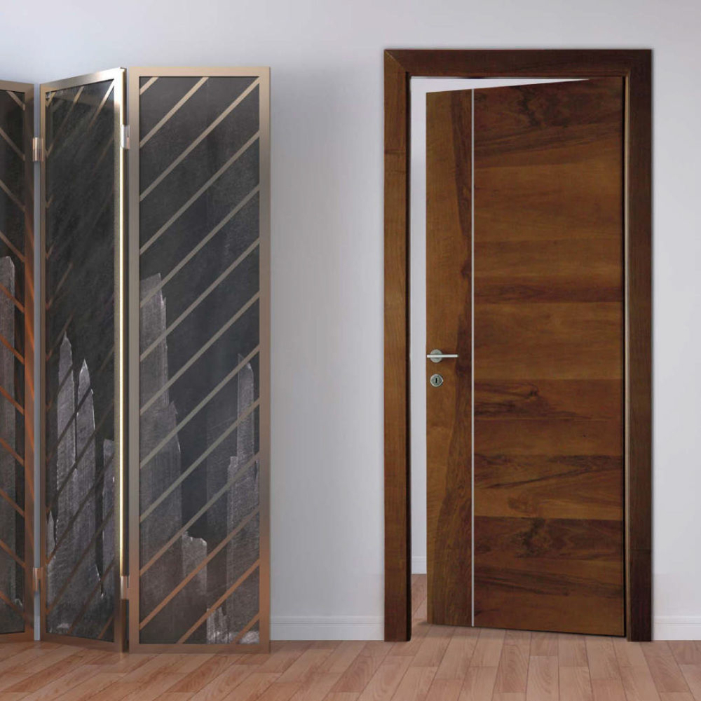 Inlay is the new Legnori line for the future, aimed at young people and straight to the practical mentality and taste. Aluminium inserts beautifully playing with the warmth and pleasure of the solid wood give to the Inlay doors a hint of technicality in addition to the charme of the classic material.