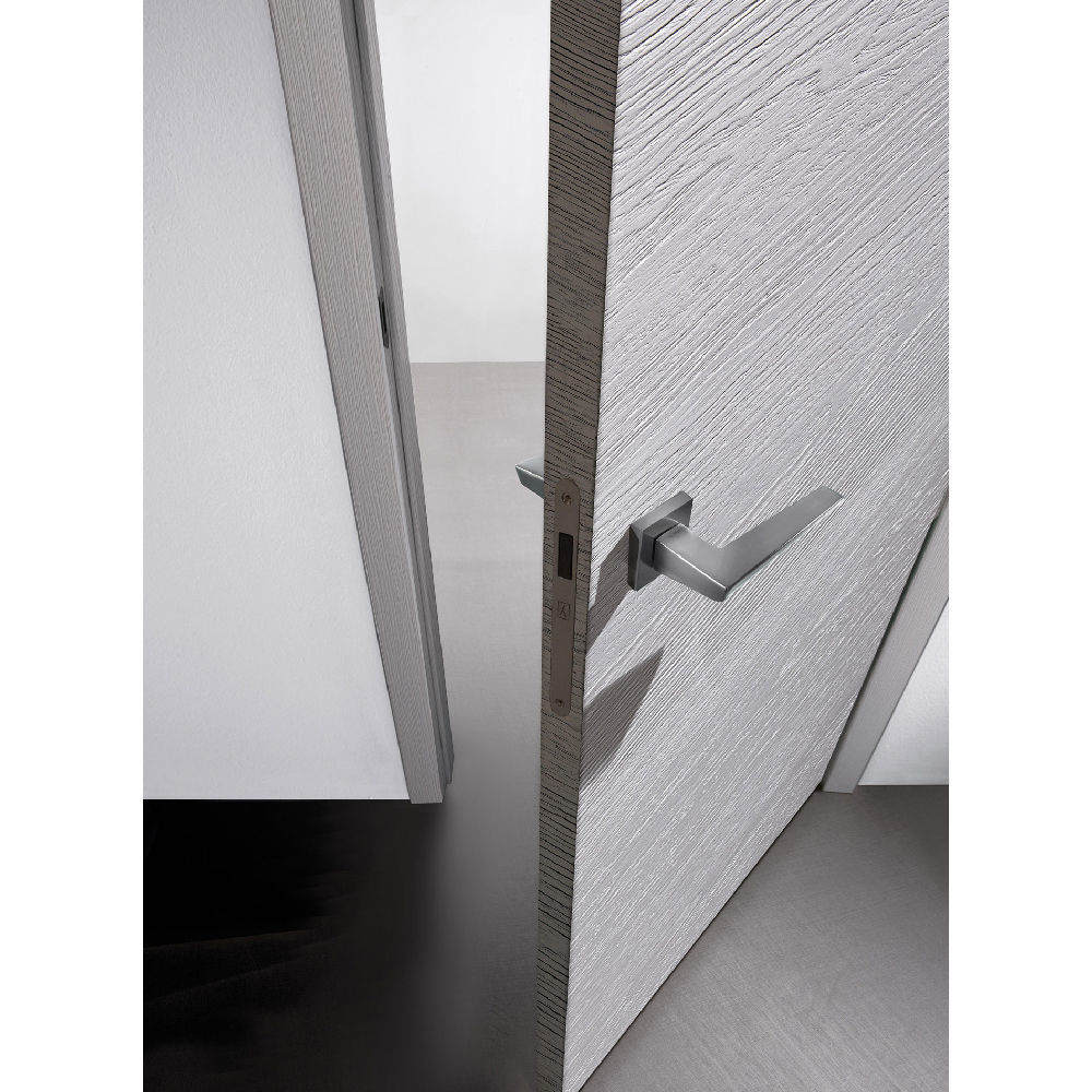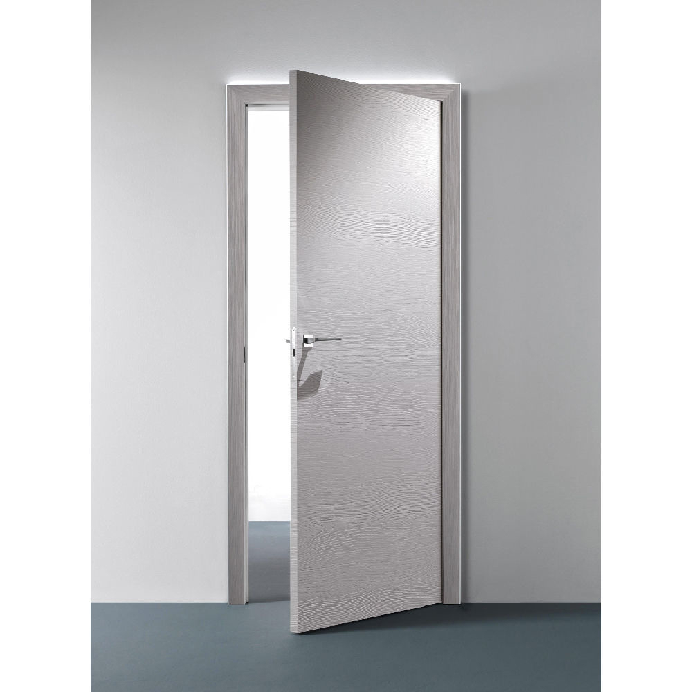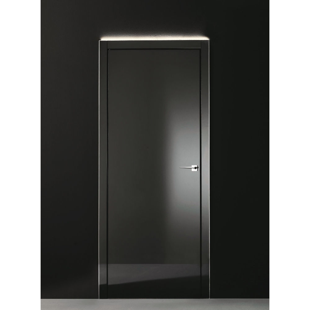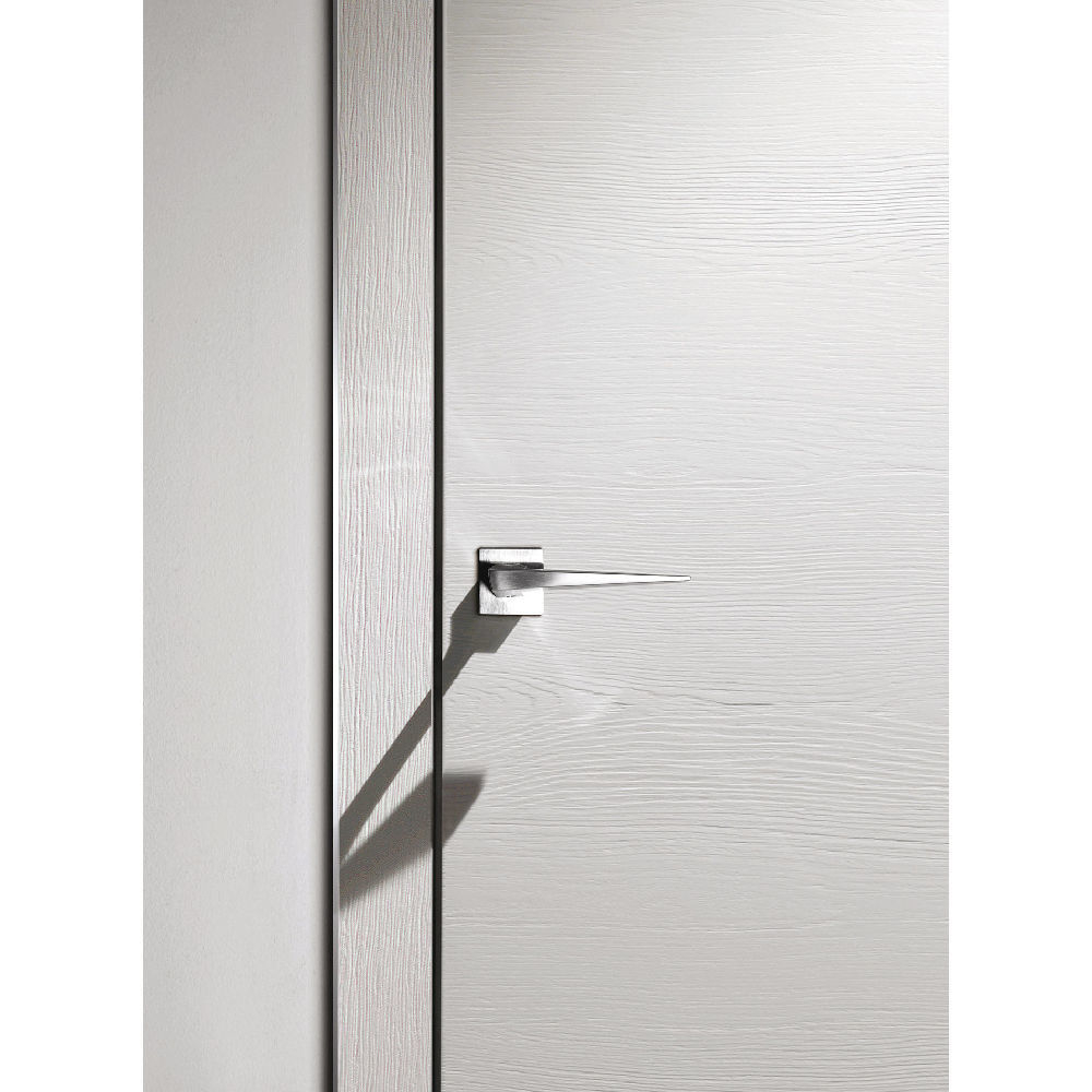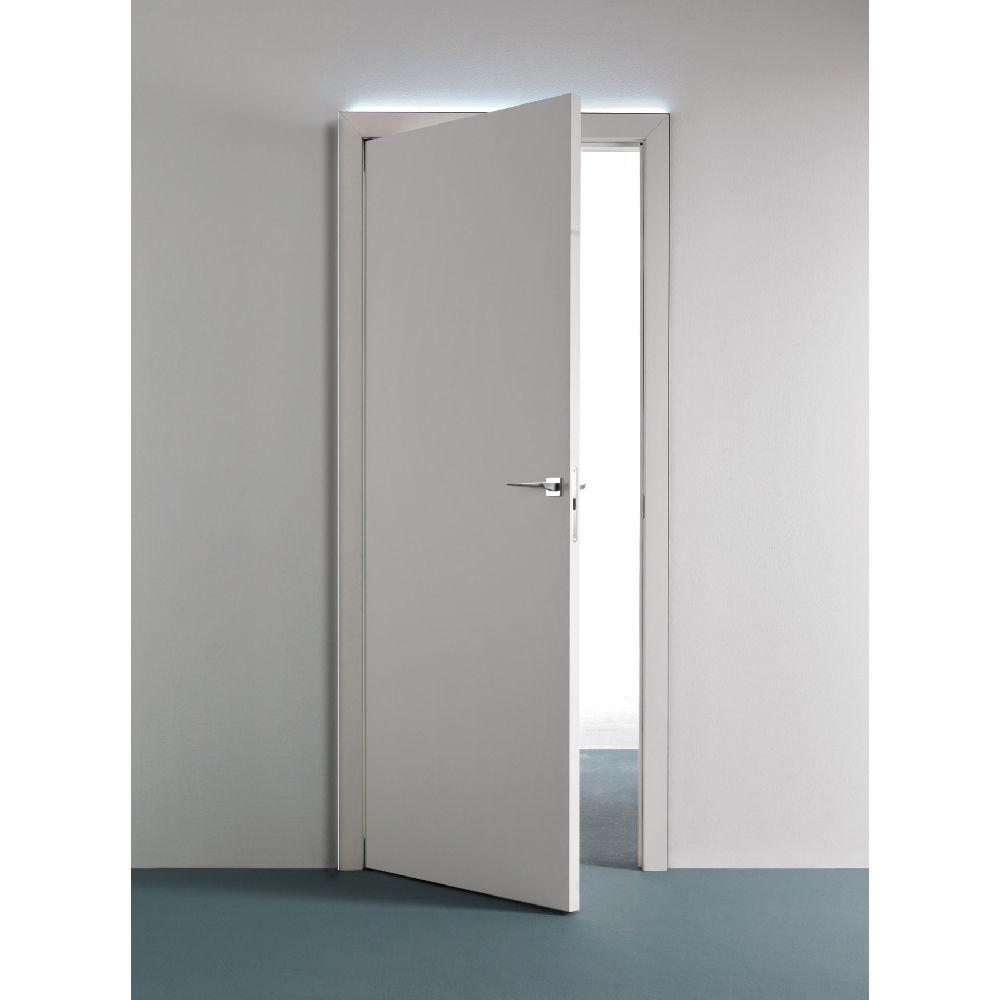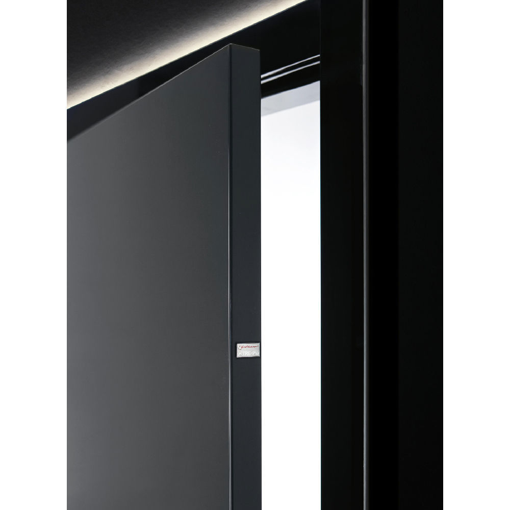 The visual experience is reinforced by the exclusive patented profile in aluminum, which separates the door from the wall with an optical effect due to its distinctive shape. It guarantees that the door is flush with the wall, and creates an interplay of shadow and light.