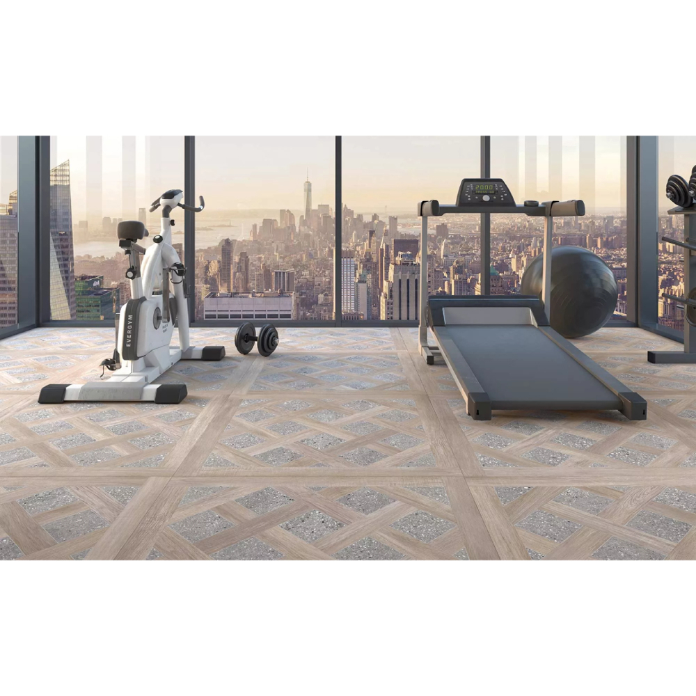 The Intarsio porcelain tile collection by Apavisa combines the warmth of wood with the refined textures of terrazzo and metals, creating a versatile and sophisticated design for contemporary and classic interiors. Available in 24”x24” and 40”x40” formats, Intarsio offers a rich color palette including Beige, Navona, Green, Grey, and Maple, enabling designers to adapt it seamlessly to any space.