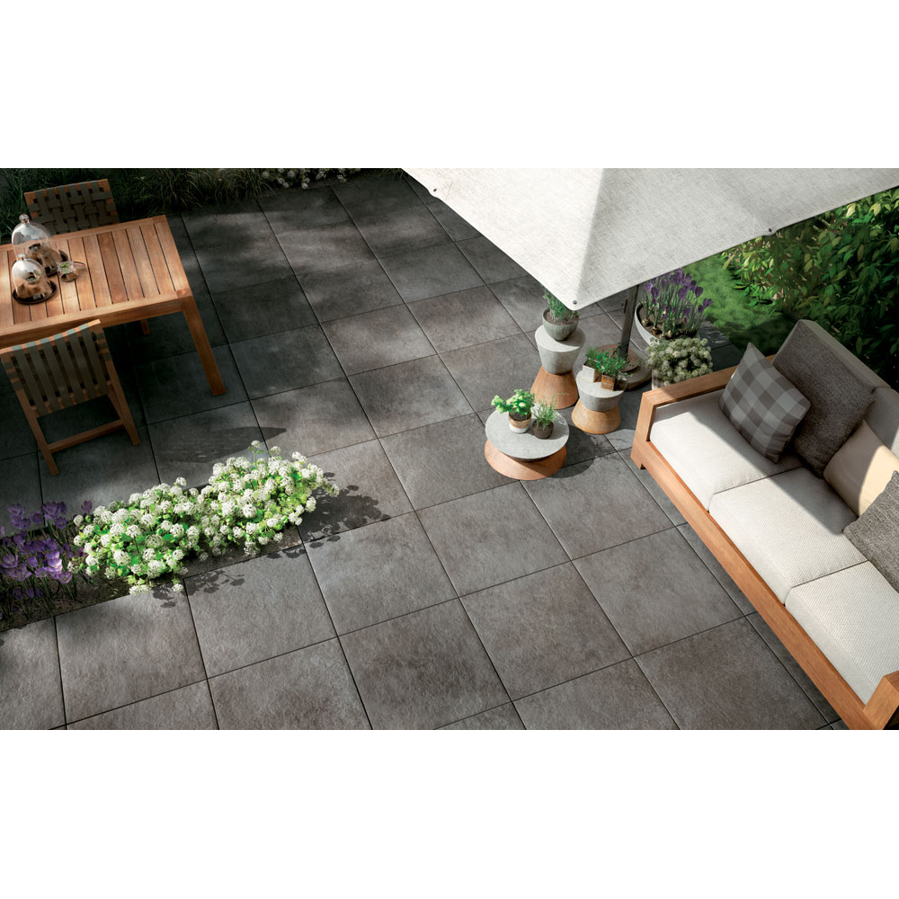 Officine has a technological soul in porcelain stoneware, the most reliable and performing material for commercial and residential buildings. It is available both for Outdoor and Indoor applications in different colors and sizes. Officine outdoor spaces feature a concrete look with all the characteristics of 2cm porcelain stoneware.