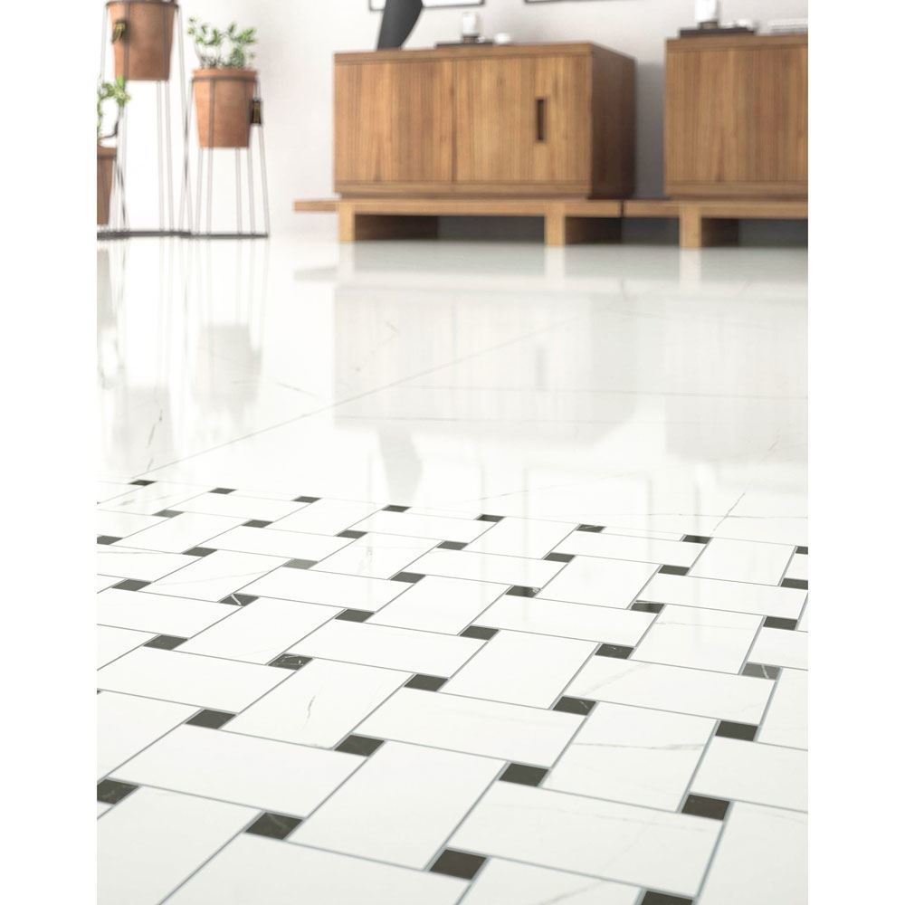The polished marble interior 12" x 12" mosaic tile Cross will blend perfectly with every interior design, with its excellent quality-price ratio.