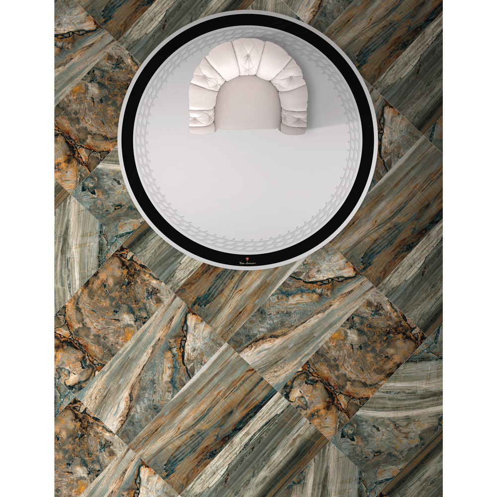 This new line blends the graphics of precious marbles with highly prestigious fossil woods. Colors are rich and complex, sophisticated and contemporary. The surface is unique, pleasant, easy to clean, shiny and precious, more typical of marble and granite than ceramic. The typical Tonino Lamborghini product, luxurious but immediate in communicating a luxury lifestyle.