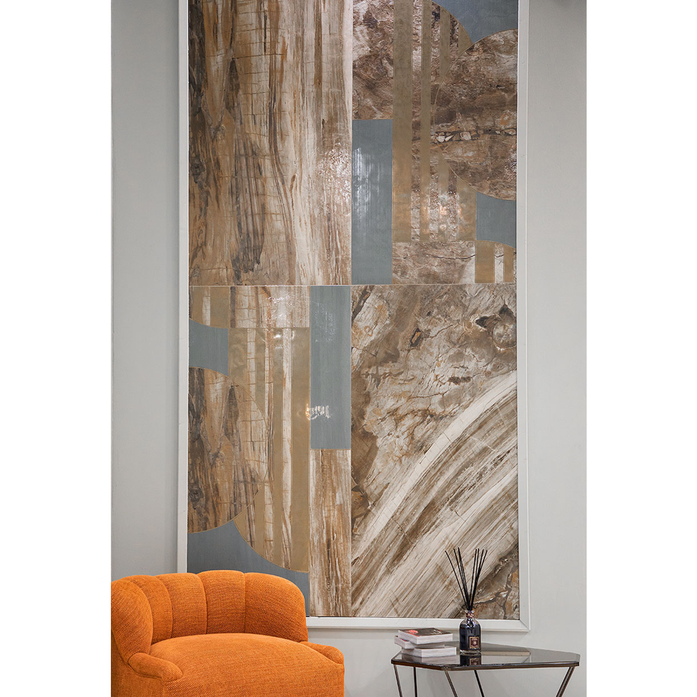 This new line blends the graphics of precious marbles with highly prestigious fossil woods. Colors are rich and complex, sophisticated and contemporary. The surface is unique, pleasant, easy to clean, shiny and precious, more typical of marble and granite than ceramic. The typical Tonino Lamborghini product, luxurious but immediate in communicating a luxury lifestyle.