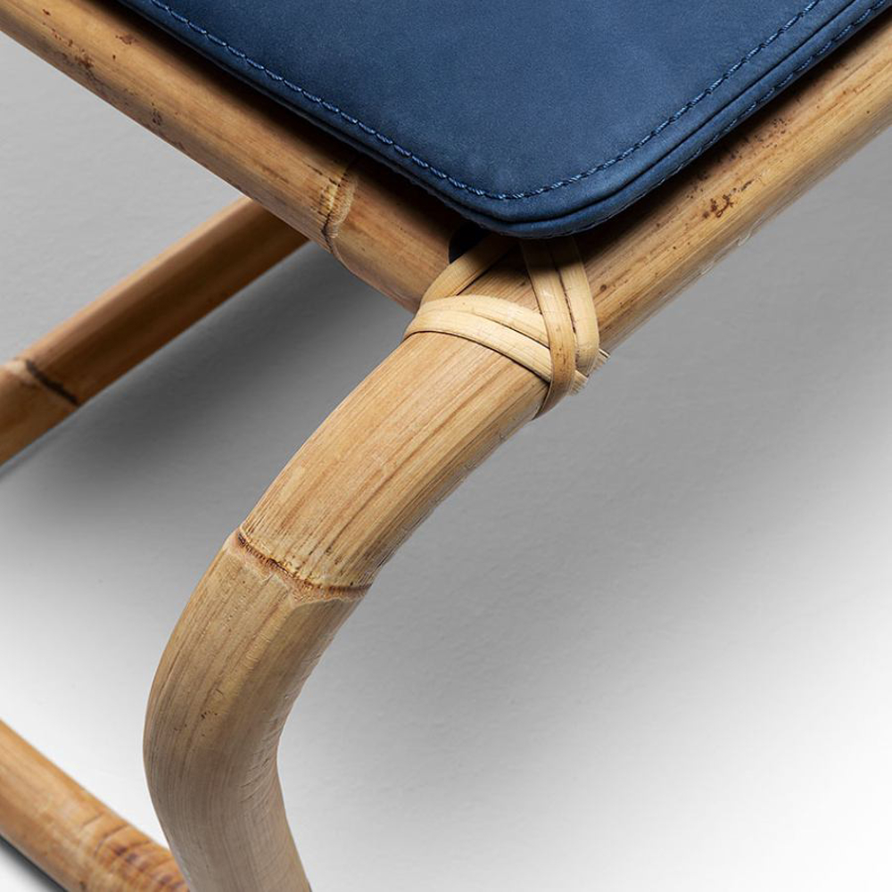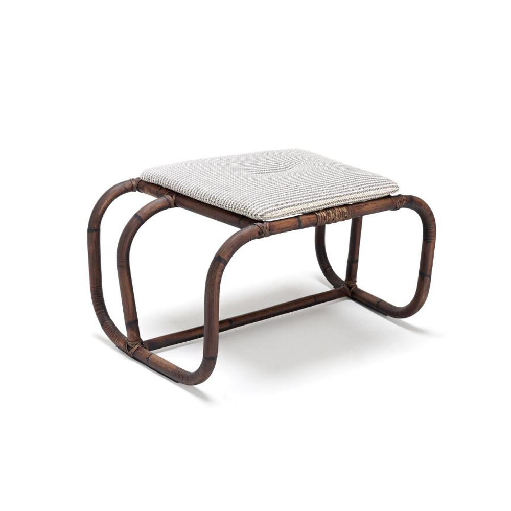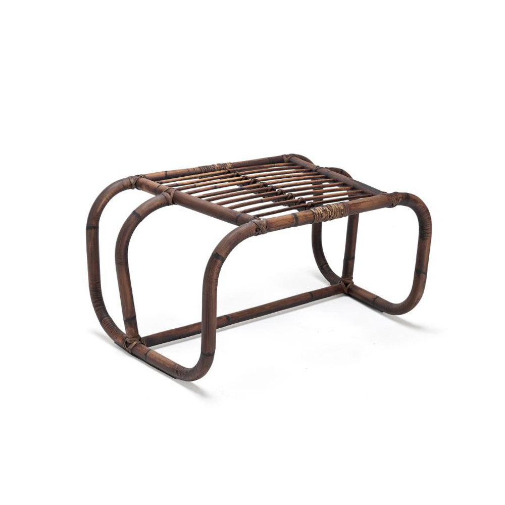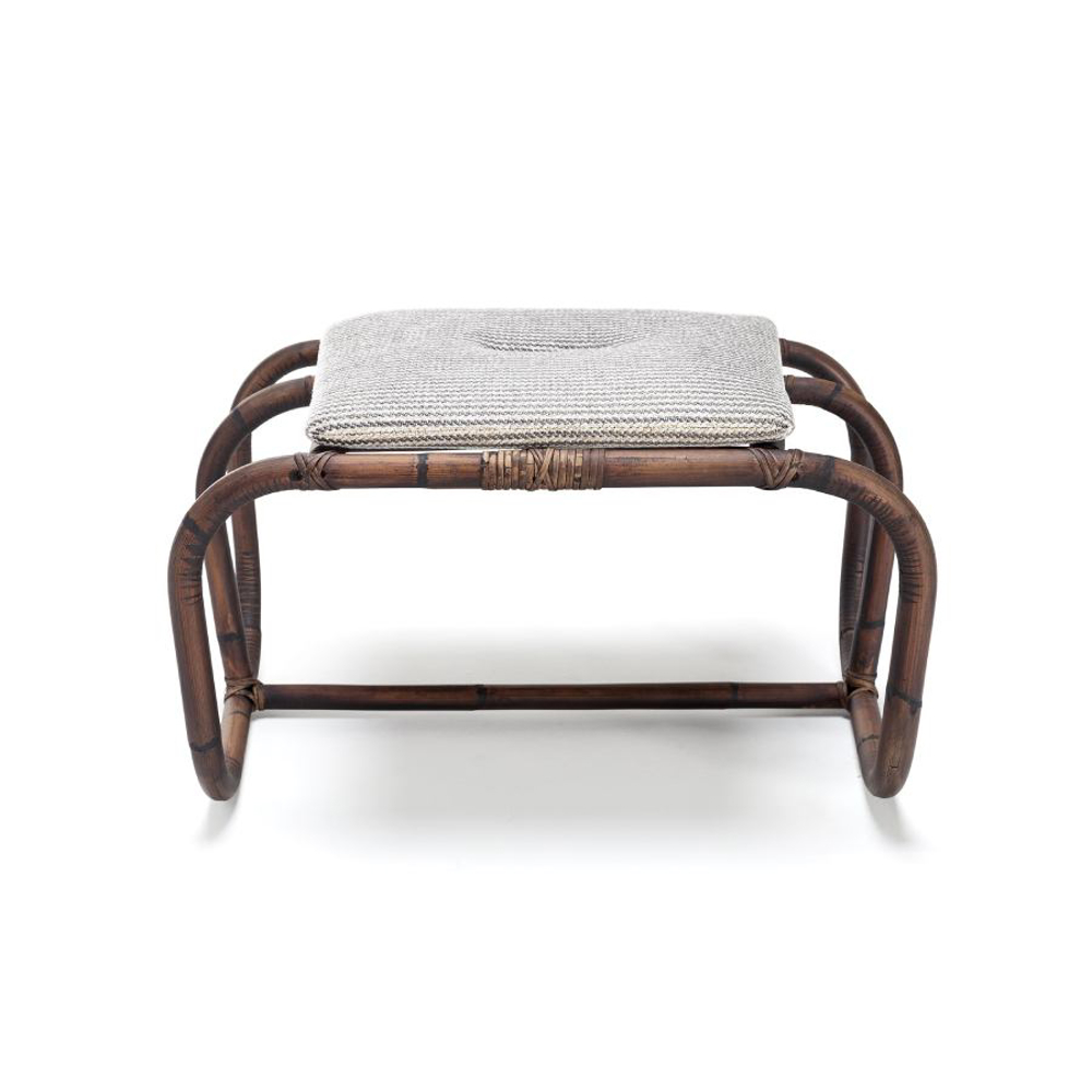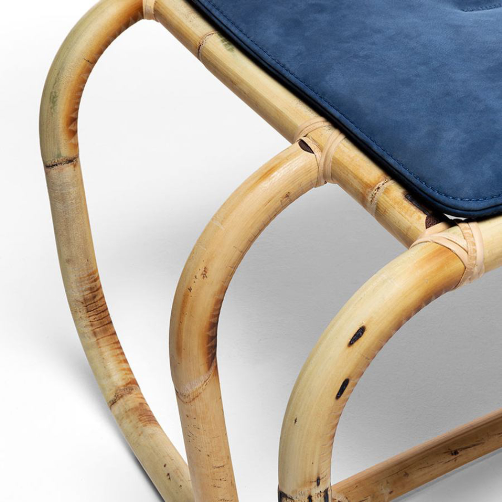 Jungle Pouf is a play of joints, letting the air dominate its structure. Made of natural wood, the skeleton arches and disappears in a dance of stable weaving.