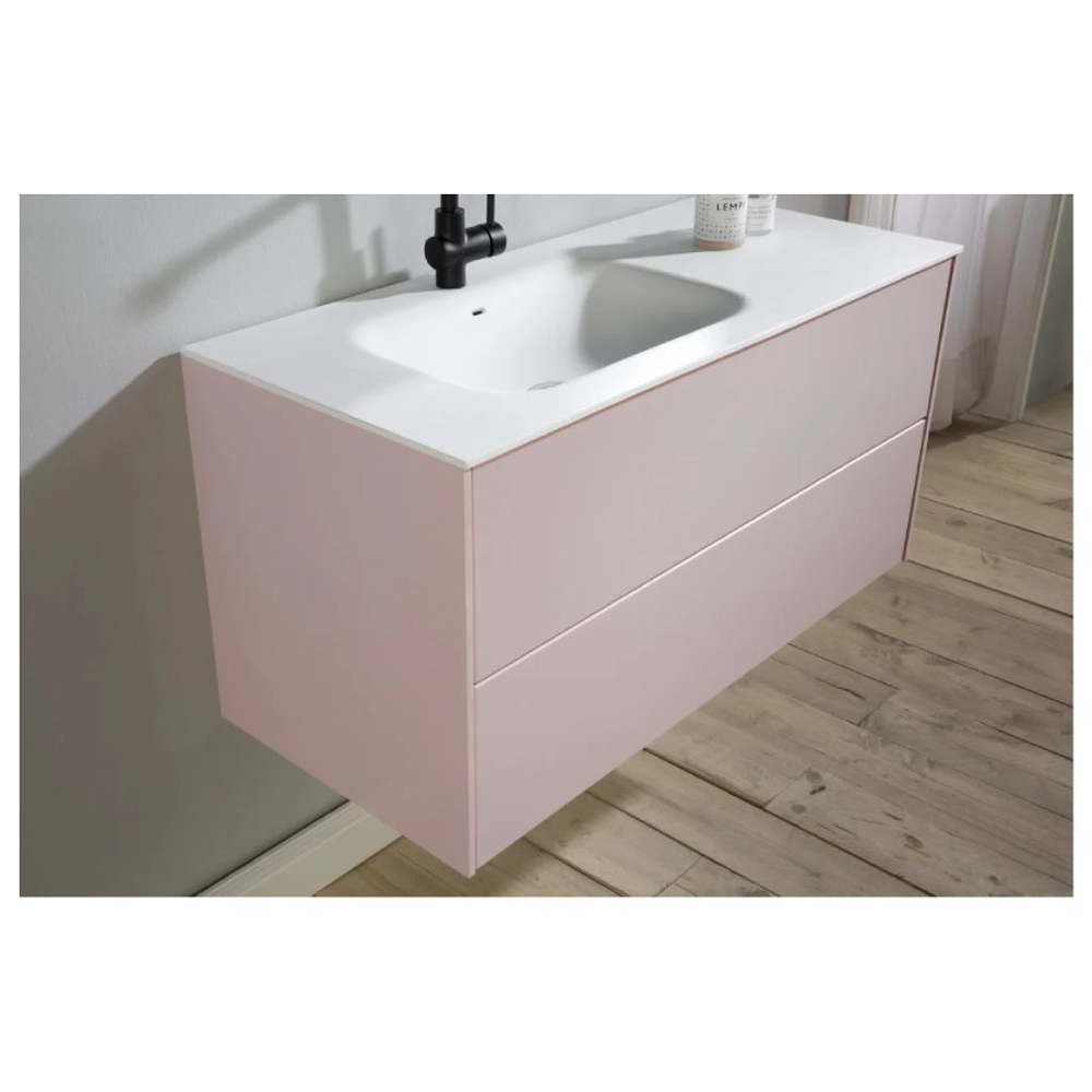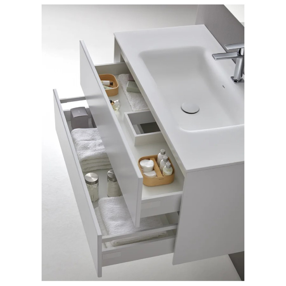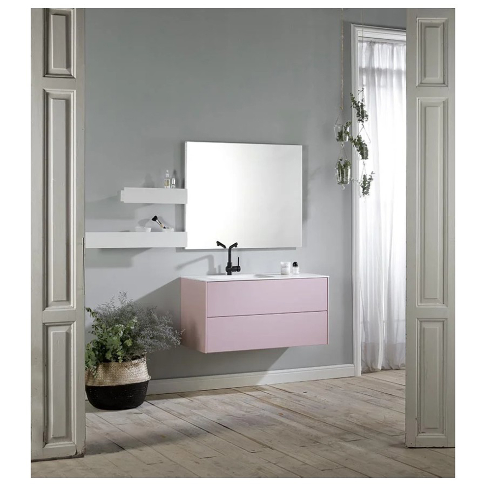 The Erica single or double washbasin wall-mounted unit will delight fans of lacquered wood among your customers. Complete your catalog of vanity units with its different finishes: glossy, matte, textured or satin.
