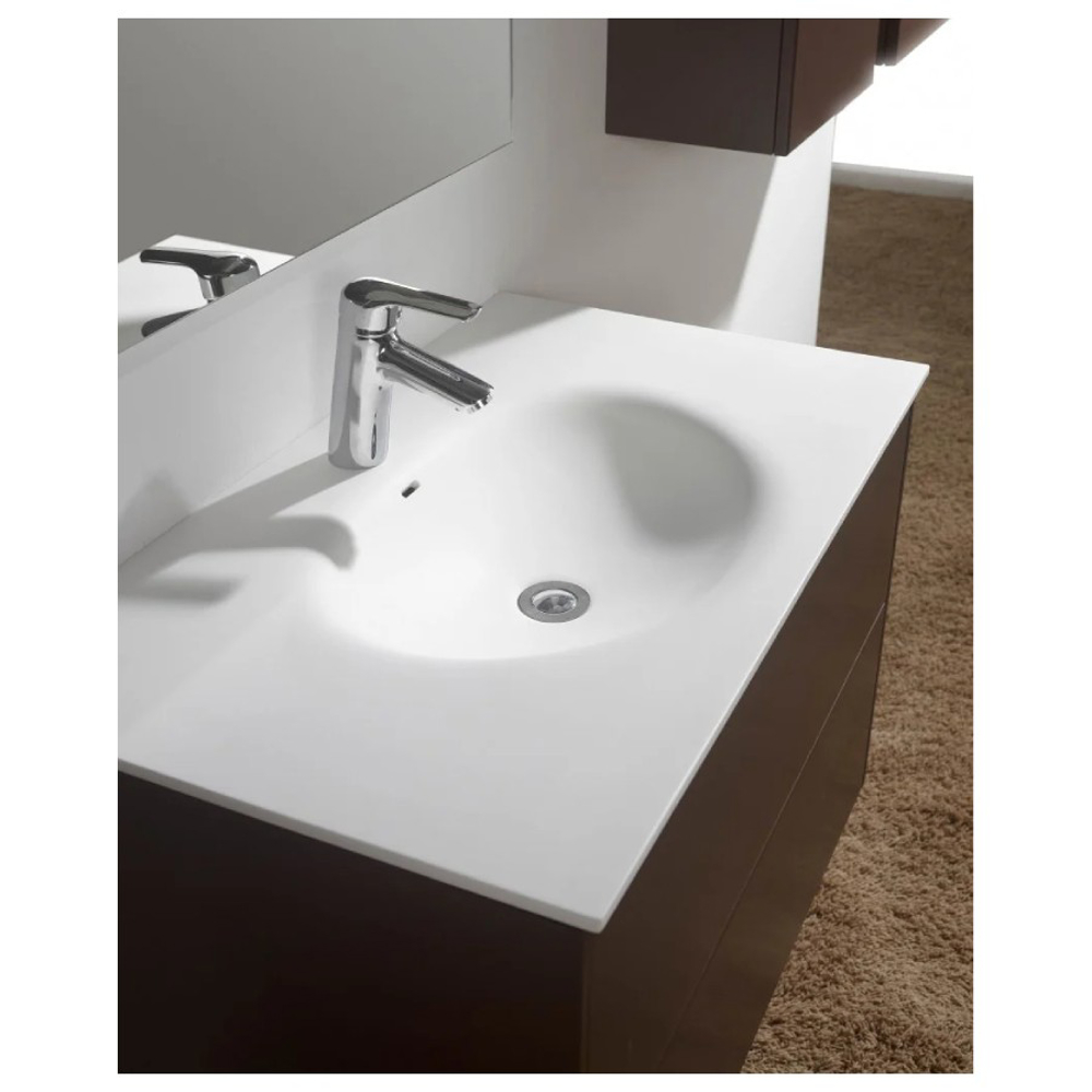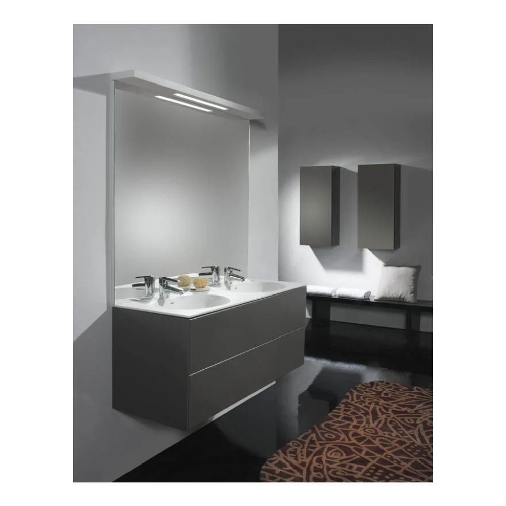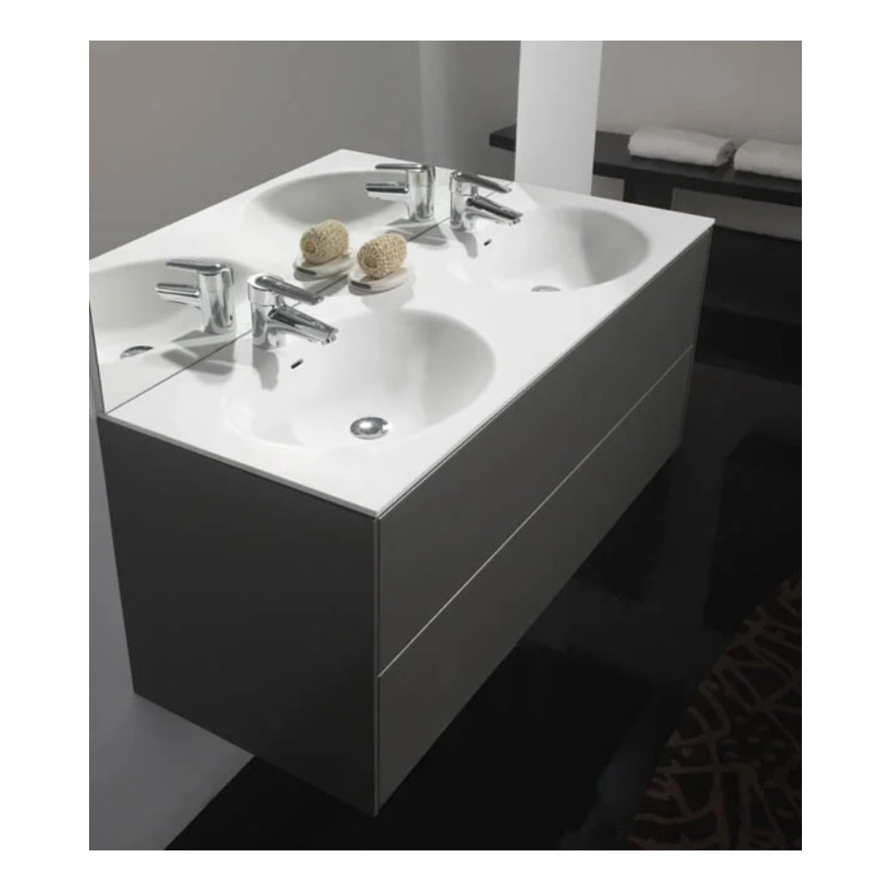 The Erica designer bathroom furniture model in single basin measures 500 mm in height and 460 mm in length. The double sink version of the Erica lacquered wood bathroom cabinet is 10 mm longer and offers a tailor-made width.