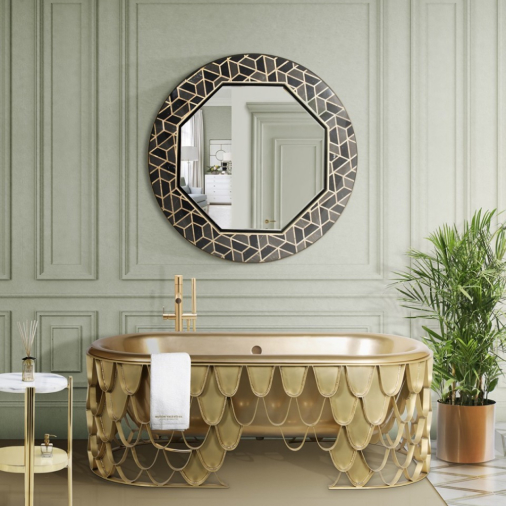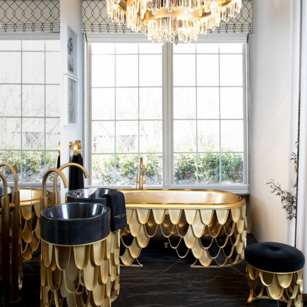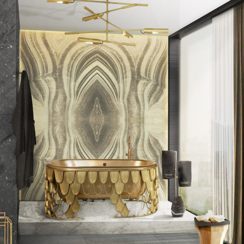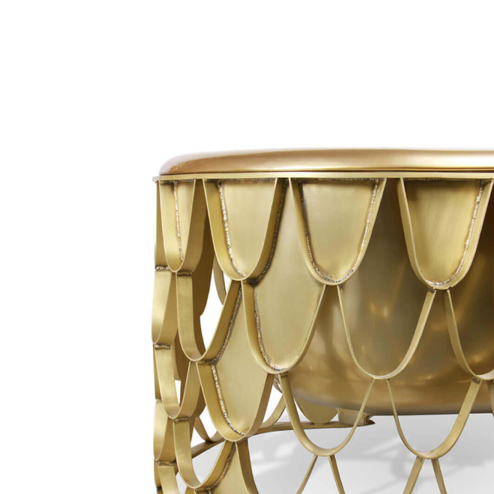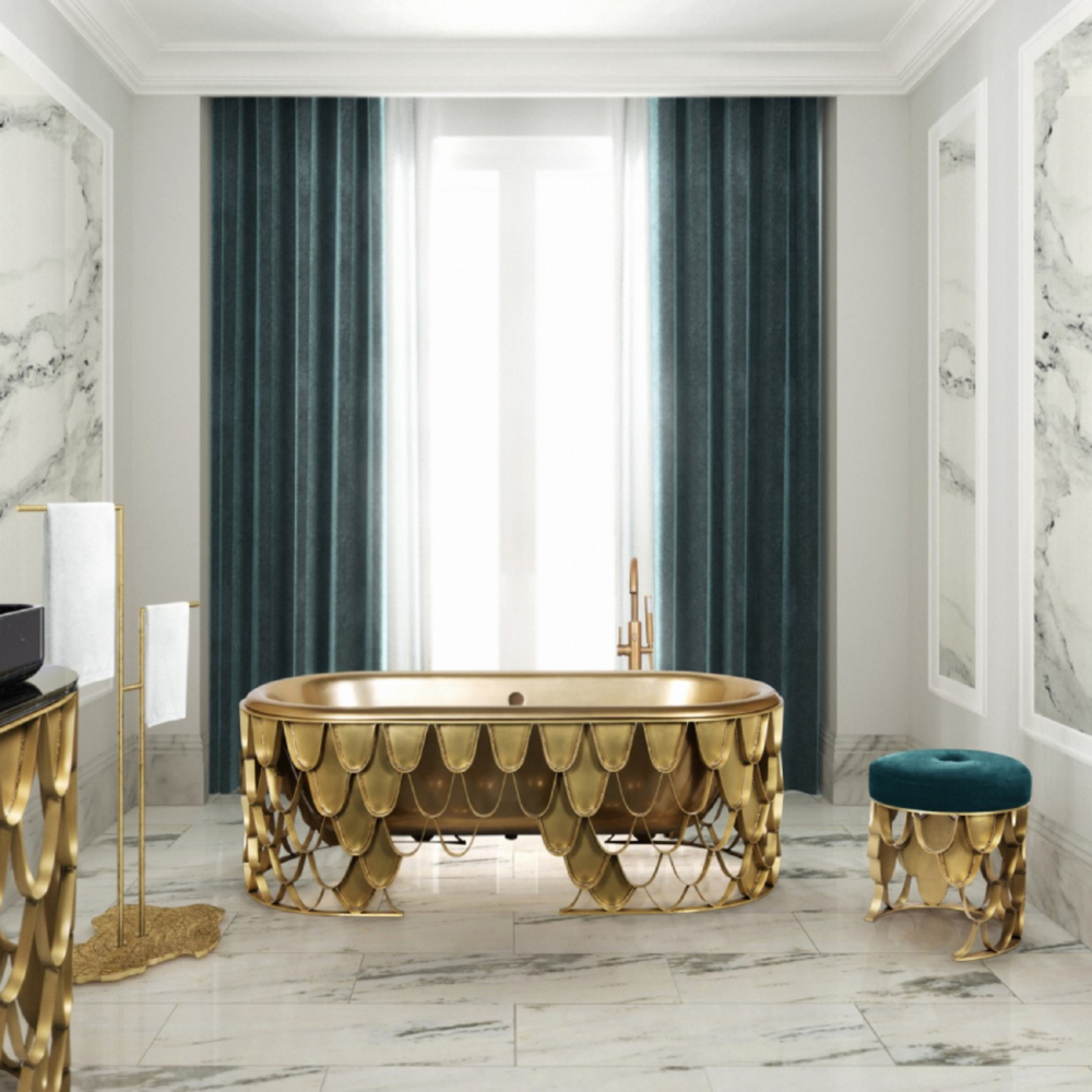 DESCRIPTION The Koi bathtub features an aged brushed brass base resembling the scales pattern of the Japanese Koi carp. The contrived patina iron tub has an oval shape and a curved lip, making it the perfect resting spot for your head. The name of this contemporary bathtub and the Japanese word for love are homophones, making the carp a symbol of love and affection.