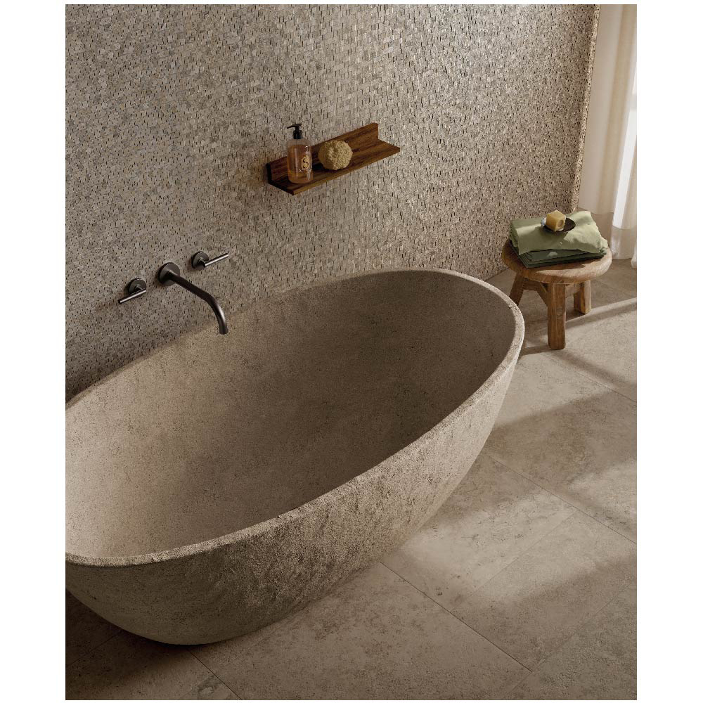 Travertine, with its warm and delicate beauty, lies at the heart of the Nativa collection — a dialogue between the natural universe and the human dimension that gives rise to a timeless material bringing simple elegance to contemporary spaces.