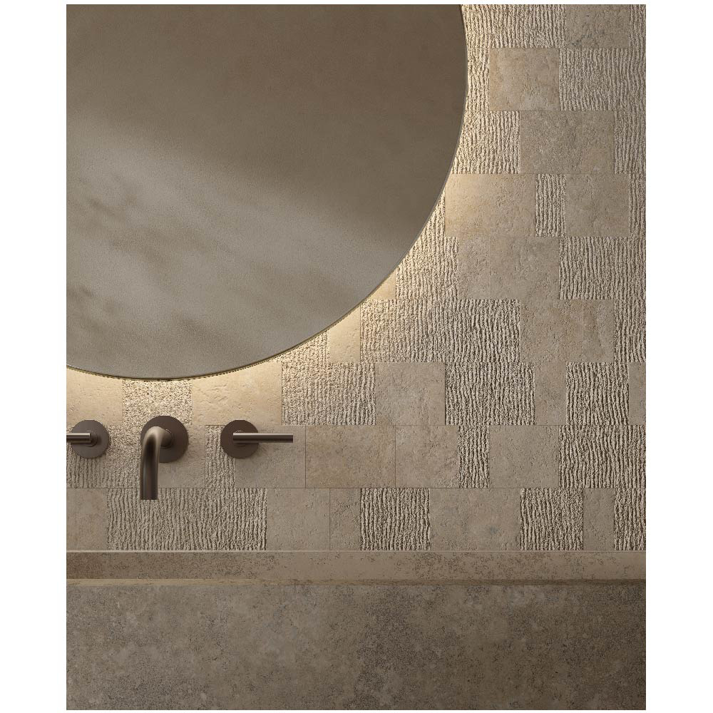 Travertine, with its warm and delicate beauty, lies at the heart of the Nativa collection — a dialogue between the natural universe and the human dimension that gives rise to a timeless material bringing simple elegance to contemporary spaces.