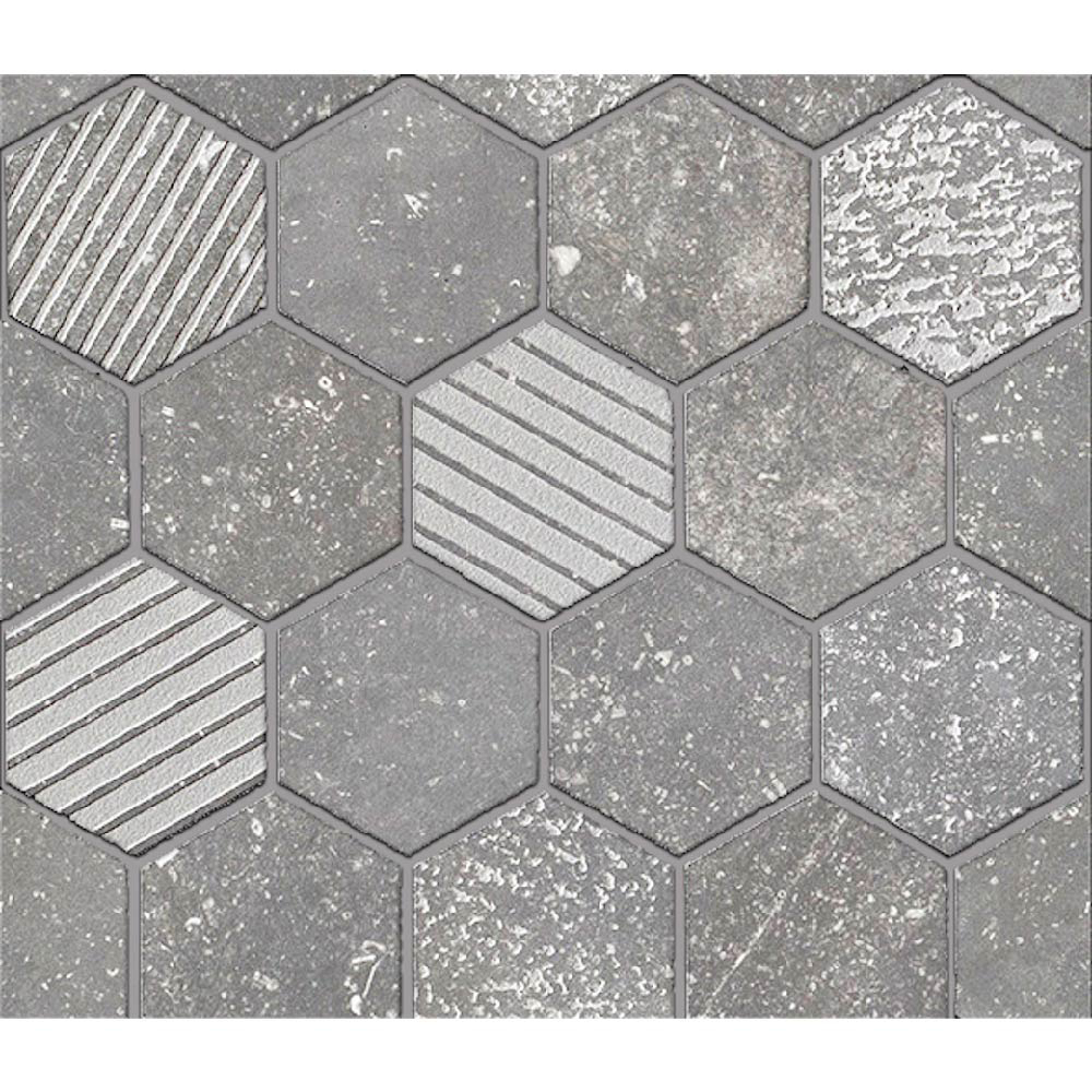 Italian Porcelain Mosaic Carrière du Kronos Gent Exa 10" x 11 5/8" 3/8" Natural