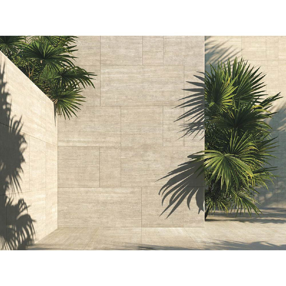 The ICON TRAVERTINE range perfectly merges the aesthetic beauty of natural travertine with the high technical standards of Kronos porcelain stoneware. Its surfaces are designed for heavy foot traffic and outdoor pathways exposed to wet conditions, making them ideal for any open-air application.