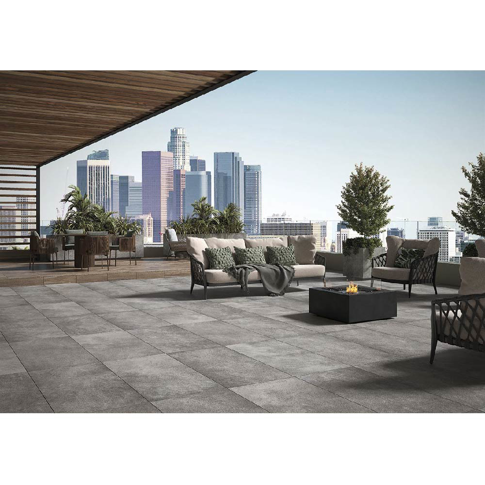 Italian outdoor porcelain tile The Stone Series embodies the artistry of nature, inspired by gentle winds sculpting sand into mesmerizing patterns. Available in two stunning colors—Creamstone, with warm, inviting tones reminiscent of a sandy beach, and Moonstone, with deep, cosmic-inspired charcoal hues.