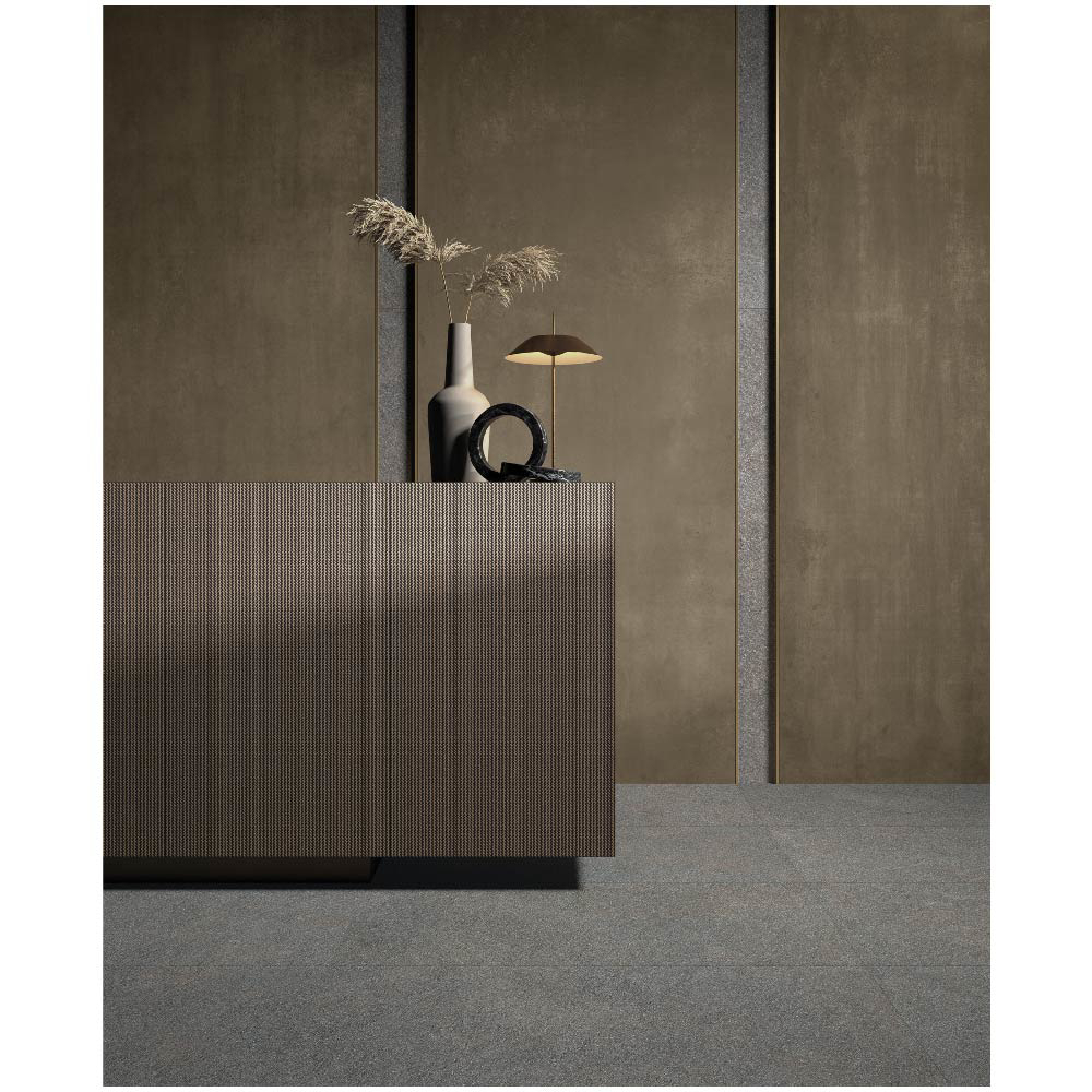 The METALLIQUE collection, with its refined metal appearance, is inspired by the desire to explore new dimensions in contemporary porcelain stoneware design. Its clean, minimal aesthetic evokes the sophisticated charm of brushed and oxidized metals, offering a sleek and modern surface suitable for both residential and commercial interiors.