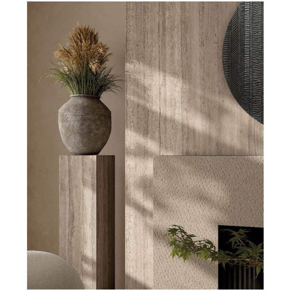 Travertine, with its warm and delicate beauty, lies at the heart of the Nativa collection — a dialogue between the natural universe and the human dimension that gives rise to a timeless material bringing simple elegance to contemporary spaces.