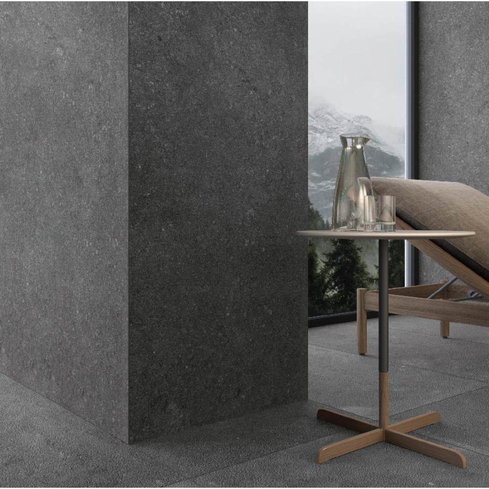 A deeper study of the stone’s internal composition led to the development of a third finish: the Carved surface. This version features a bush-hammered, highly structured texture that enhances the stone’s rich personality. The Carved surface can be perfectly combined with both Elegance and Antique finishes, offering visual harmony and functional versatility thanks to its anti-slip properties.