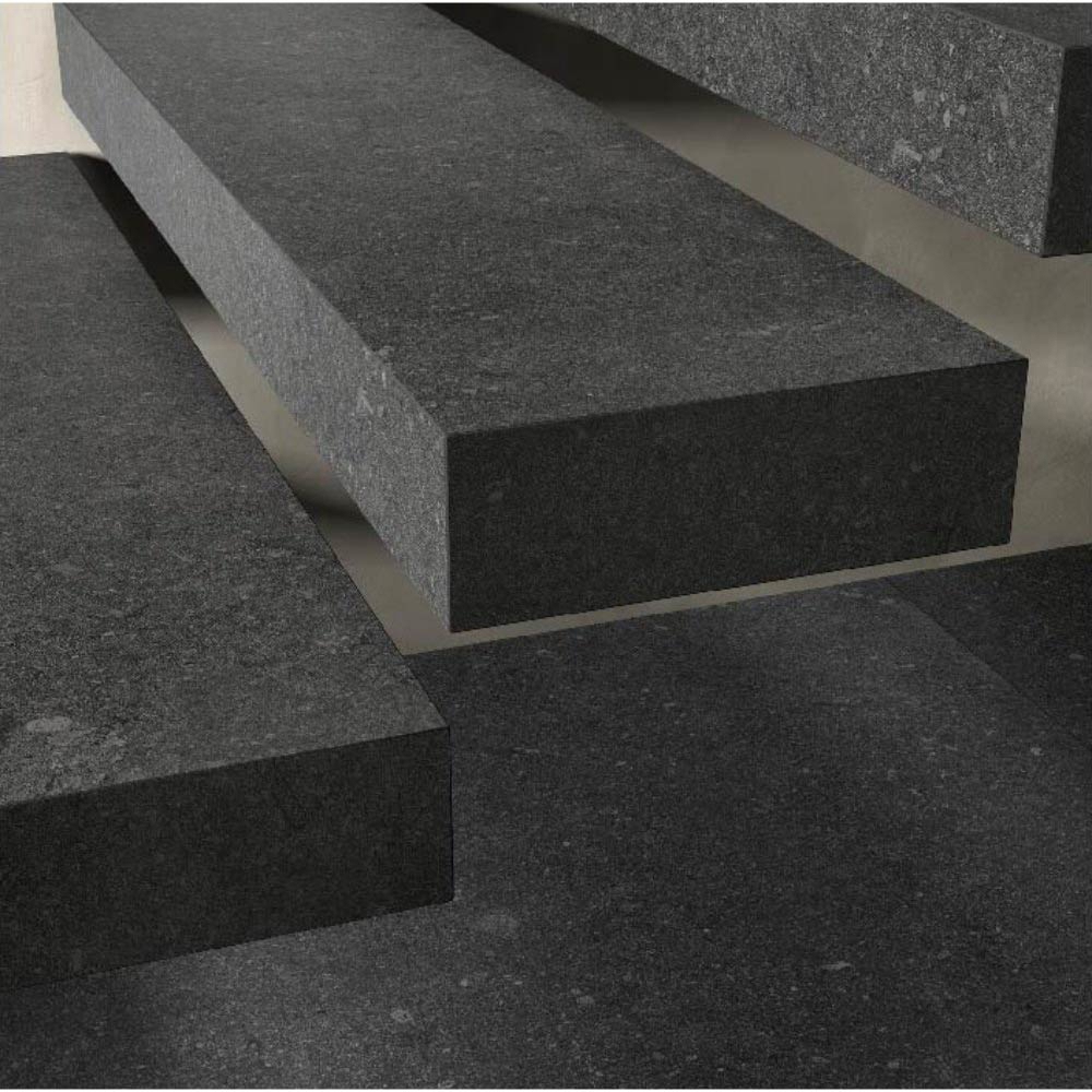 With its blend of natural stone effect, textured surfaces, and high-performance porcelain stoneware, the Reverse series is ideal for creating coordinated design projects with a strong architectural identity.