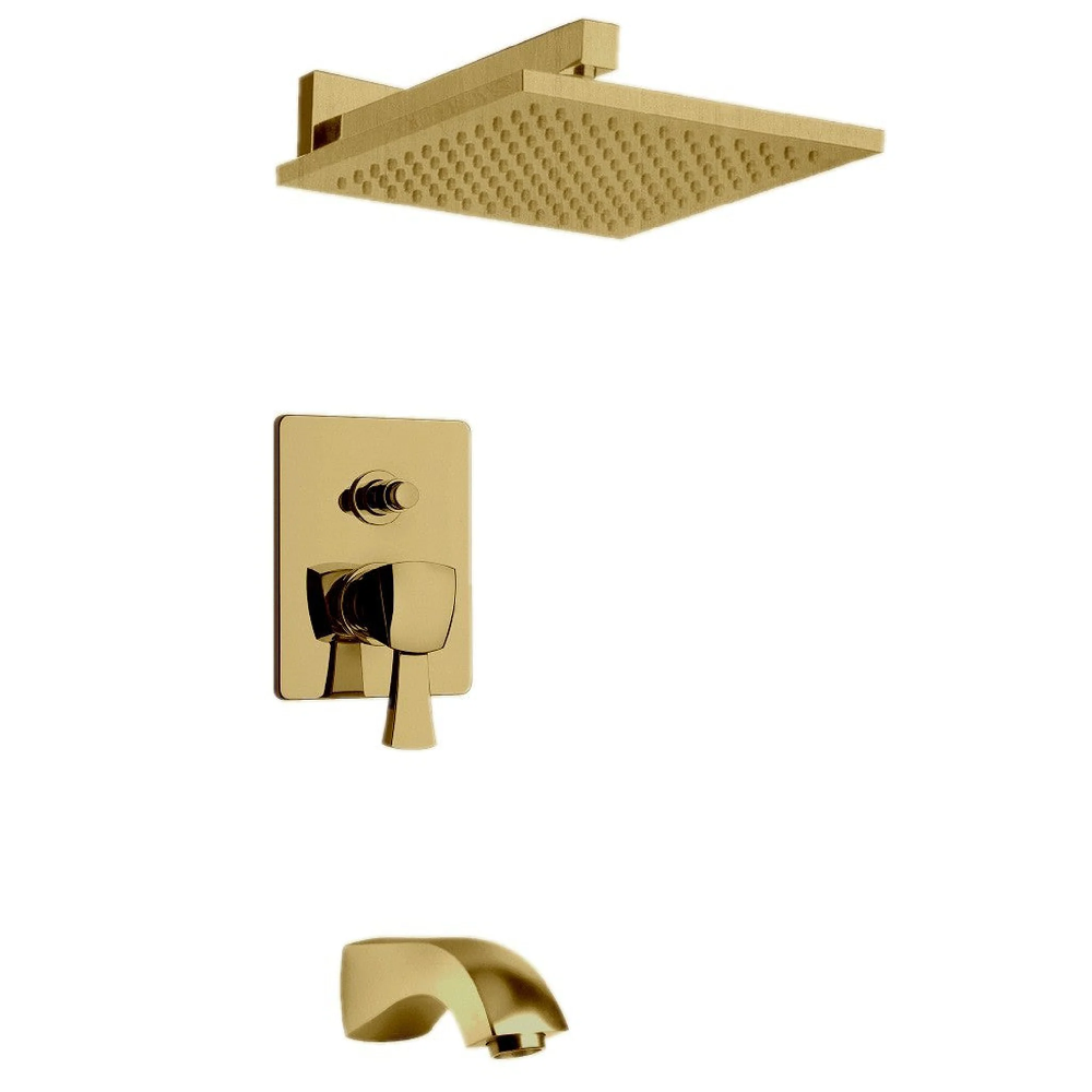 KIT including:- 8" Brass Square rain shower head- Anti Limestone- 12" Brass Square wall mounted arm & flange- Trim 788 with diverter & ceramic disc valve cartridge- Rough in valve 788- 8 17/64" Brass tub spout 1/2" NPT inlet connections