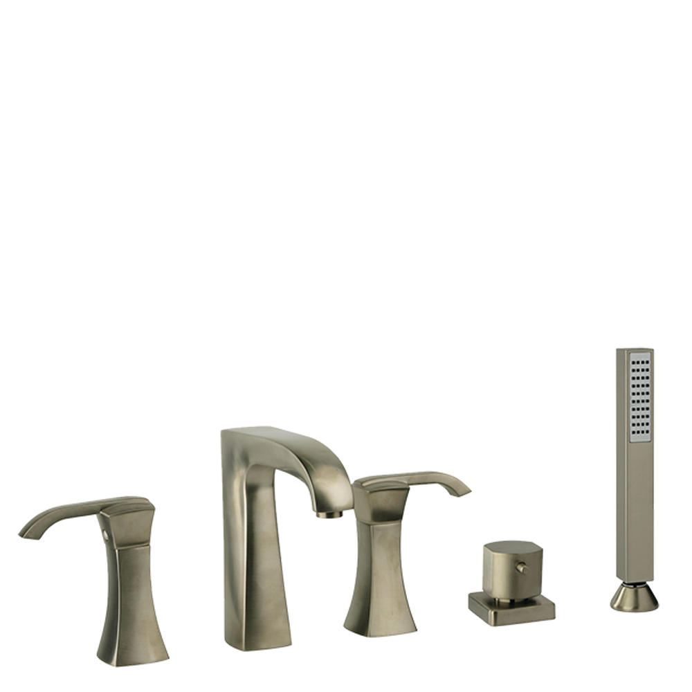 Danu widespread lavatory faucet with wenge spout in Brushed Nickel