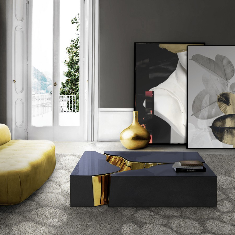 Polished brass and black lacquer.