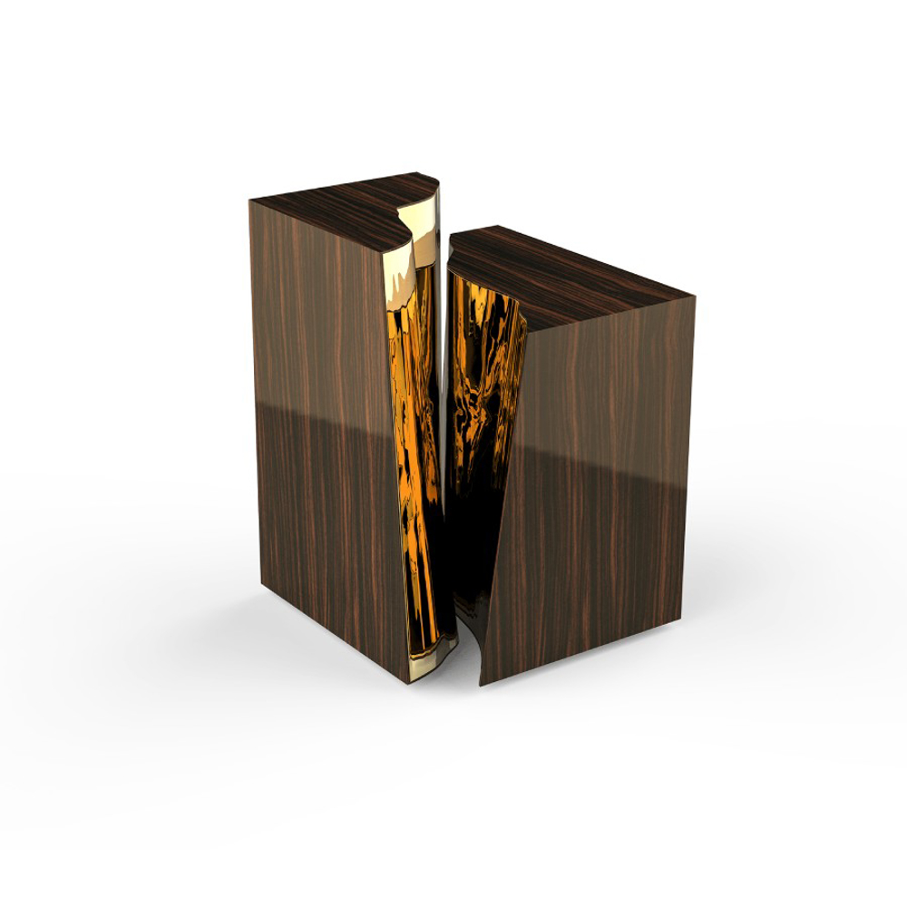 Ebony Root Veneer exterior, polished brass interior details and made of wood structure. Composed of 3 pieces.