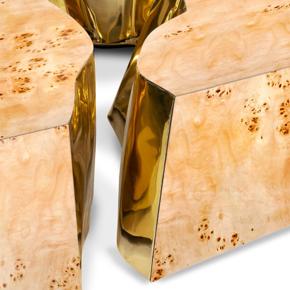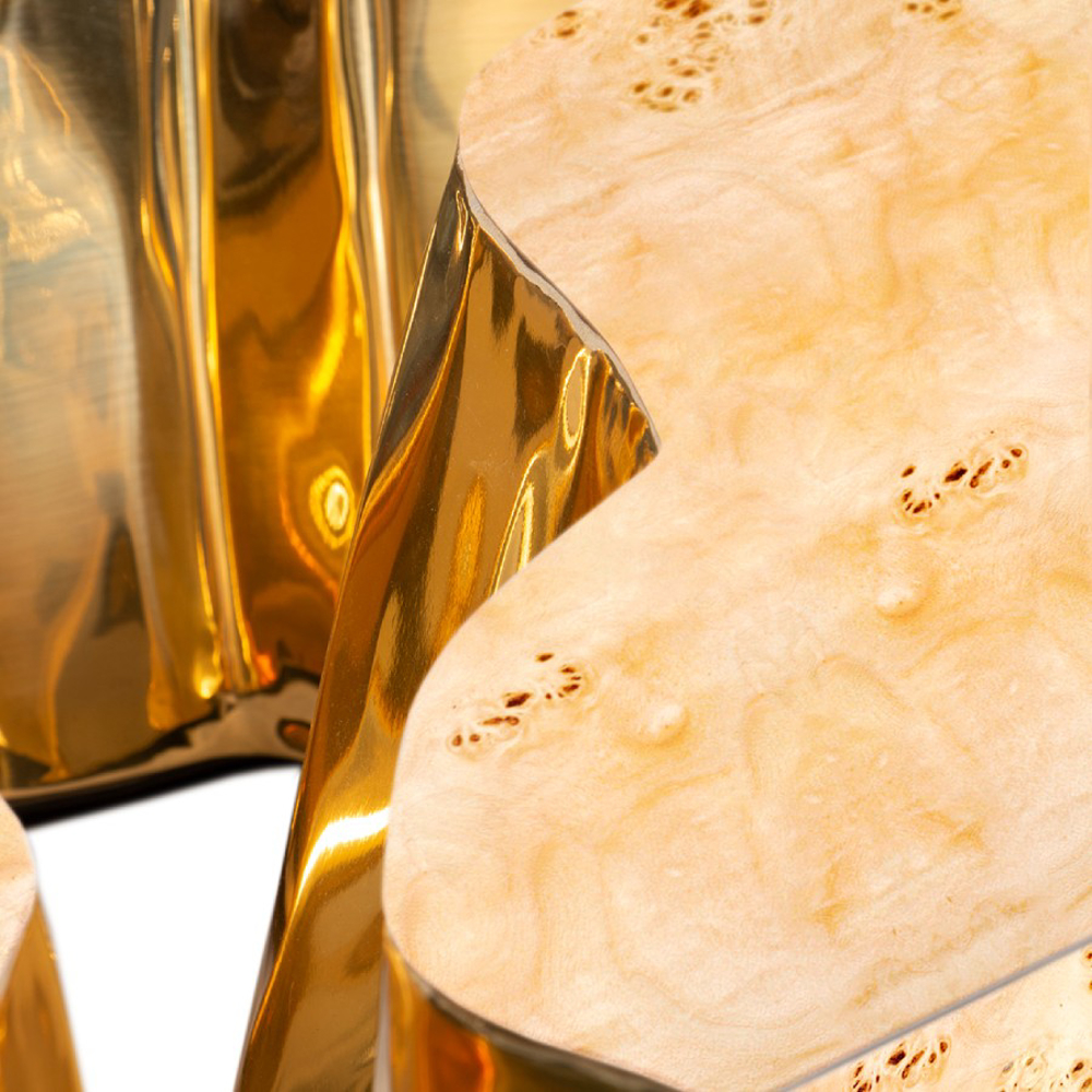 Ebony Root Veneer exterior, polished brass interior details and made of wood structure. Composed of 3 pieces.