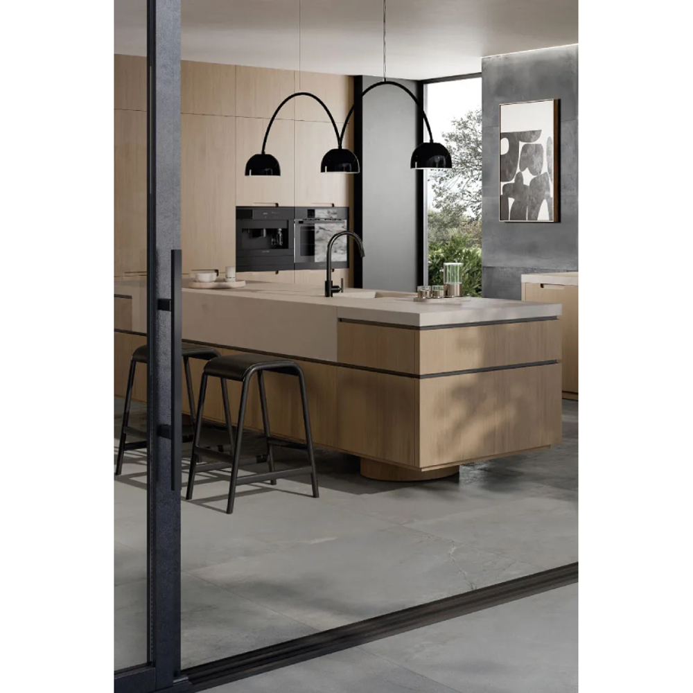 Legame celebrates the dual spirit of stone and concrete, enhanced with metallic accents, reflecting contemporary trends in architecture and interior design. Available in rectified sizes of 40” × 40”, 24” × 48”, and 24” × 24”, Grey allows for ultra-thin grout lines, evoking the industrial-chic elegance of repurposed factory spaces while maintaining a refined and sophisticated aesthetic.