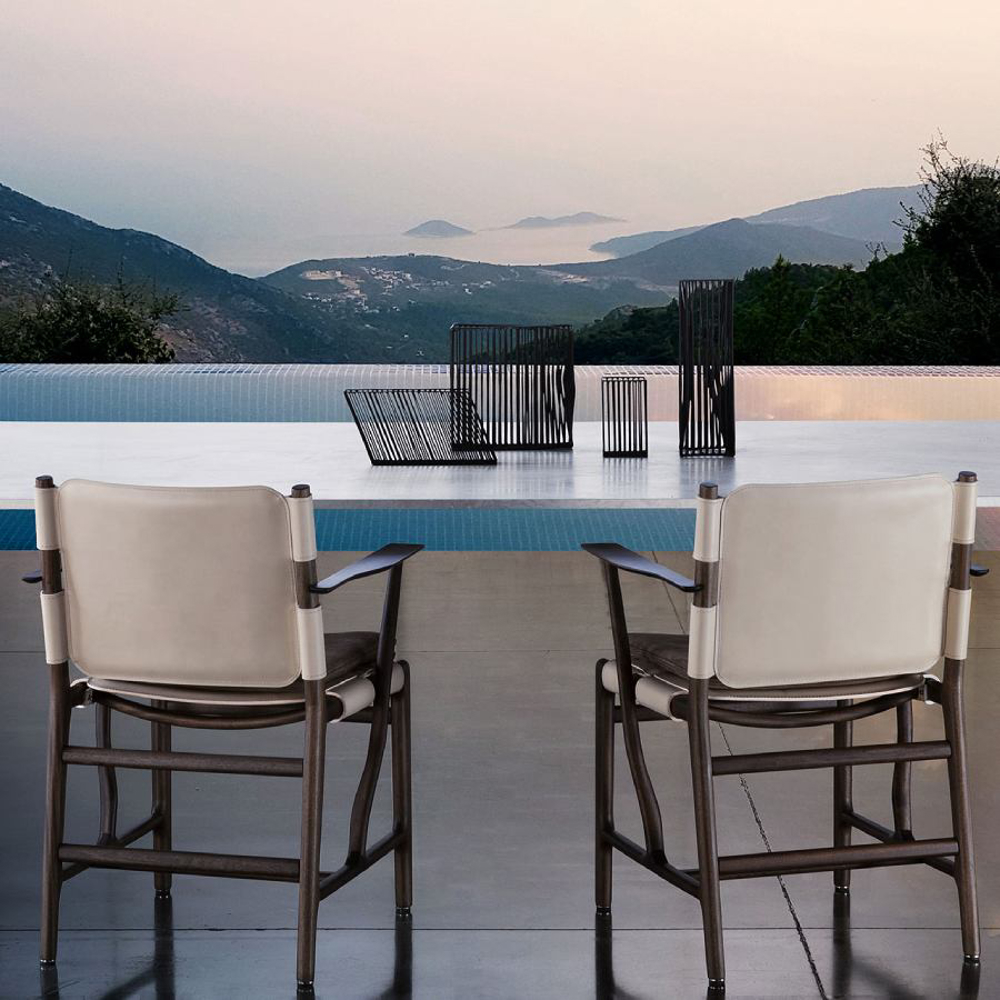 The seat and backrest are made of genuine leather treated for outdoor use to always ensure the product’s maximum tightness and resistance in the outdoor environment.