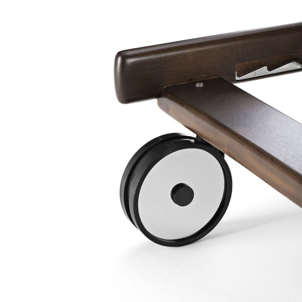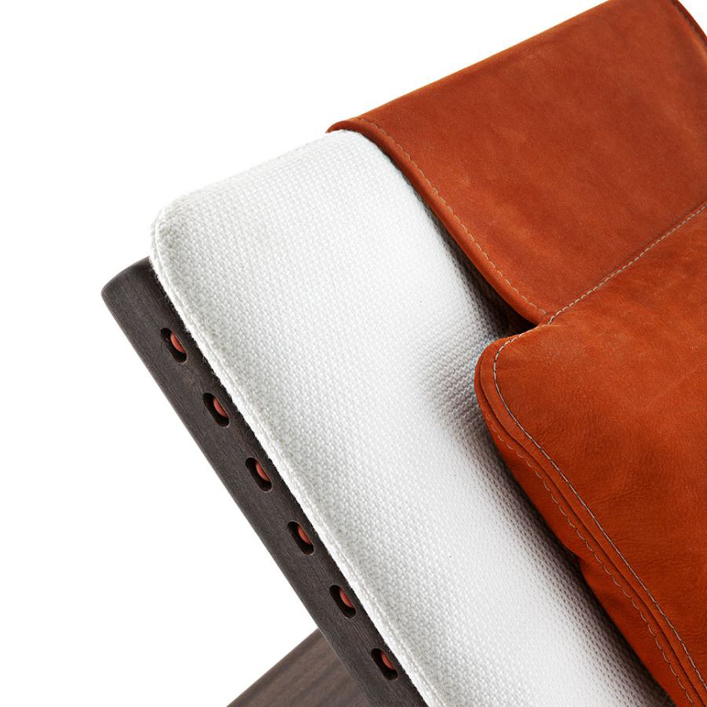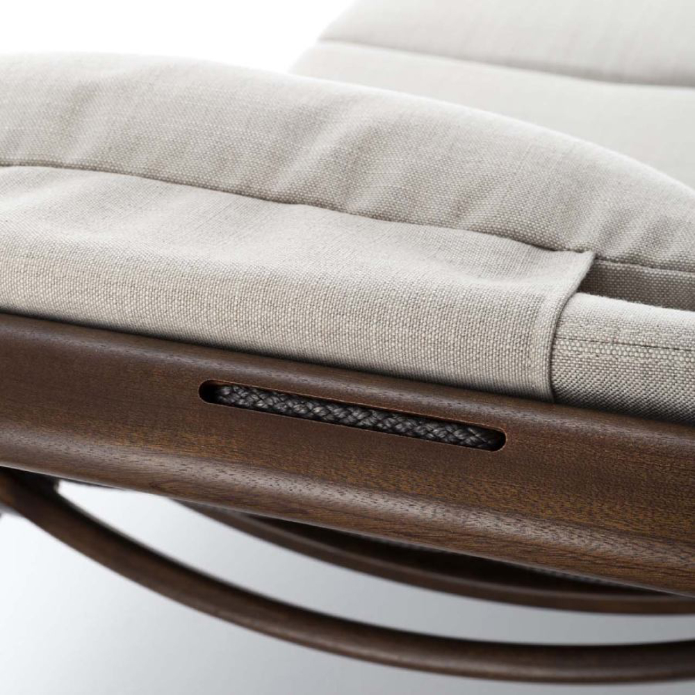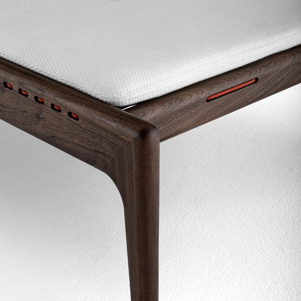 The mahogany structure evokes the image of the traditional artisan loom, and like a canvas, Extetiflex is hand-woven on it. The waterproof material is available in three colors and composed of PVC, resistant to UV rays and weathering, making it perfect for the outdoors. The weave guarantees maximum hold and comfort.